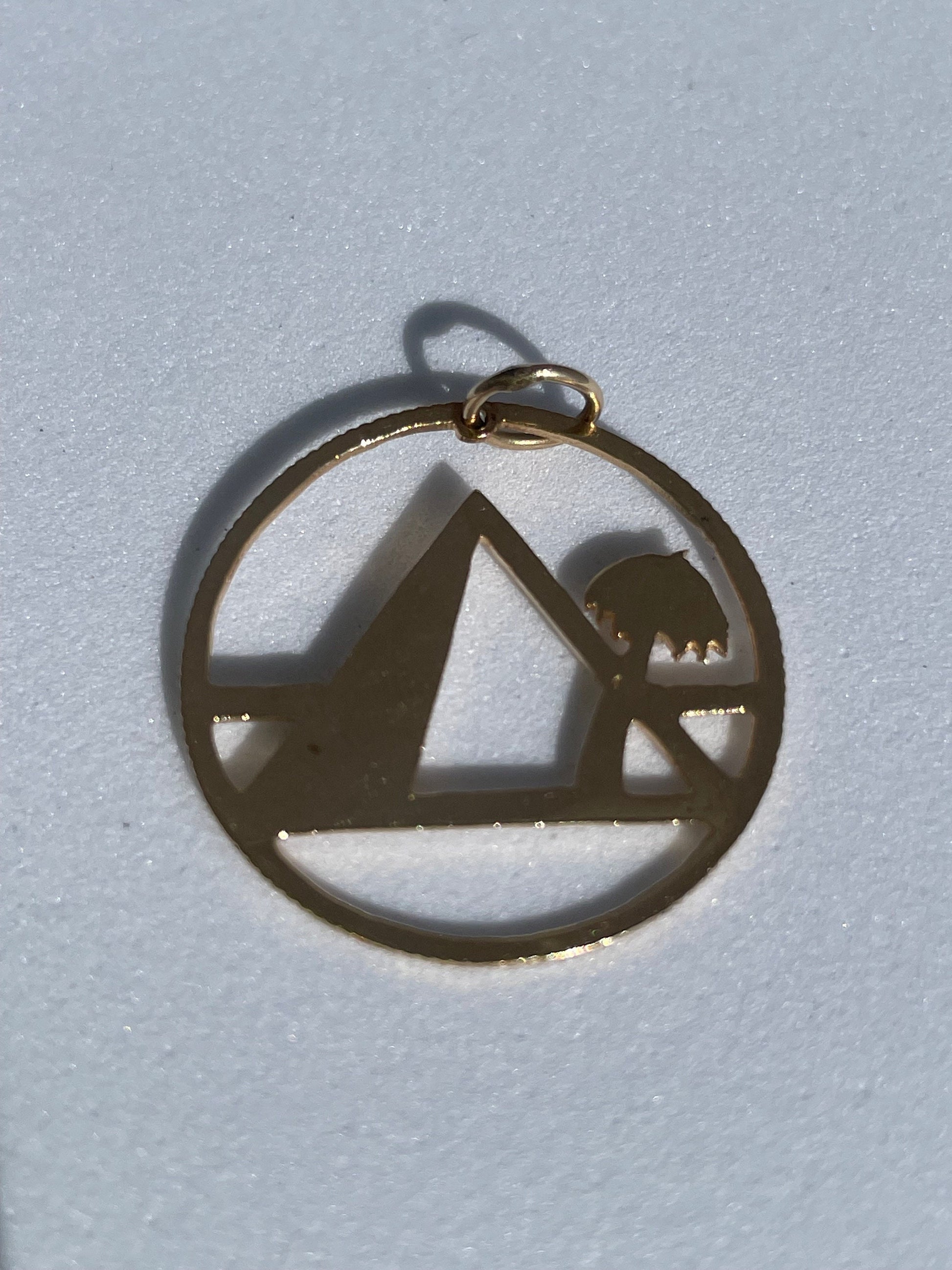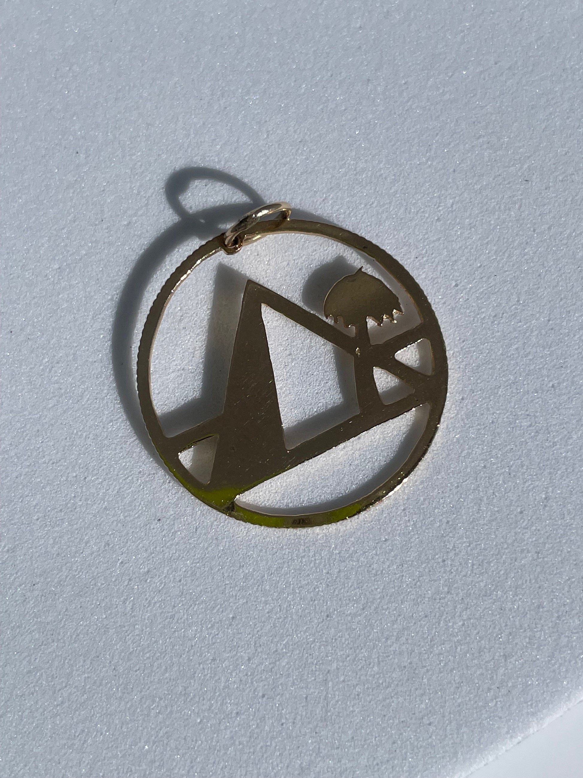 Vintage Estate Pyramid and Palm Tree Charm Pendant 1970’s in 14k