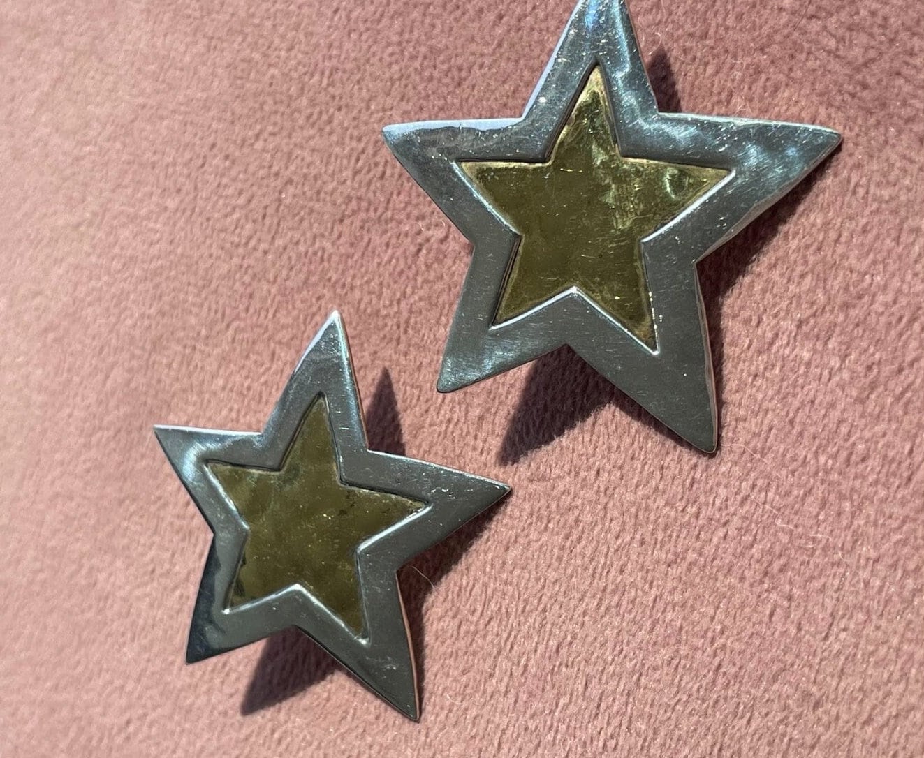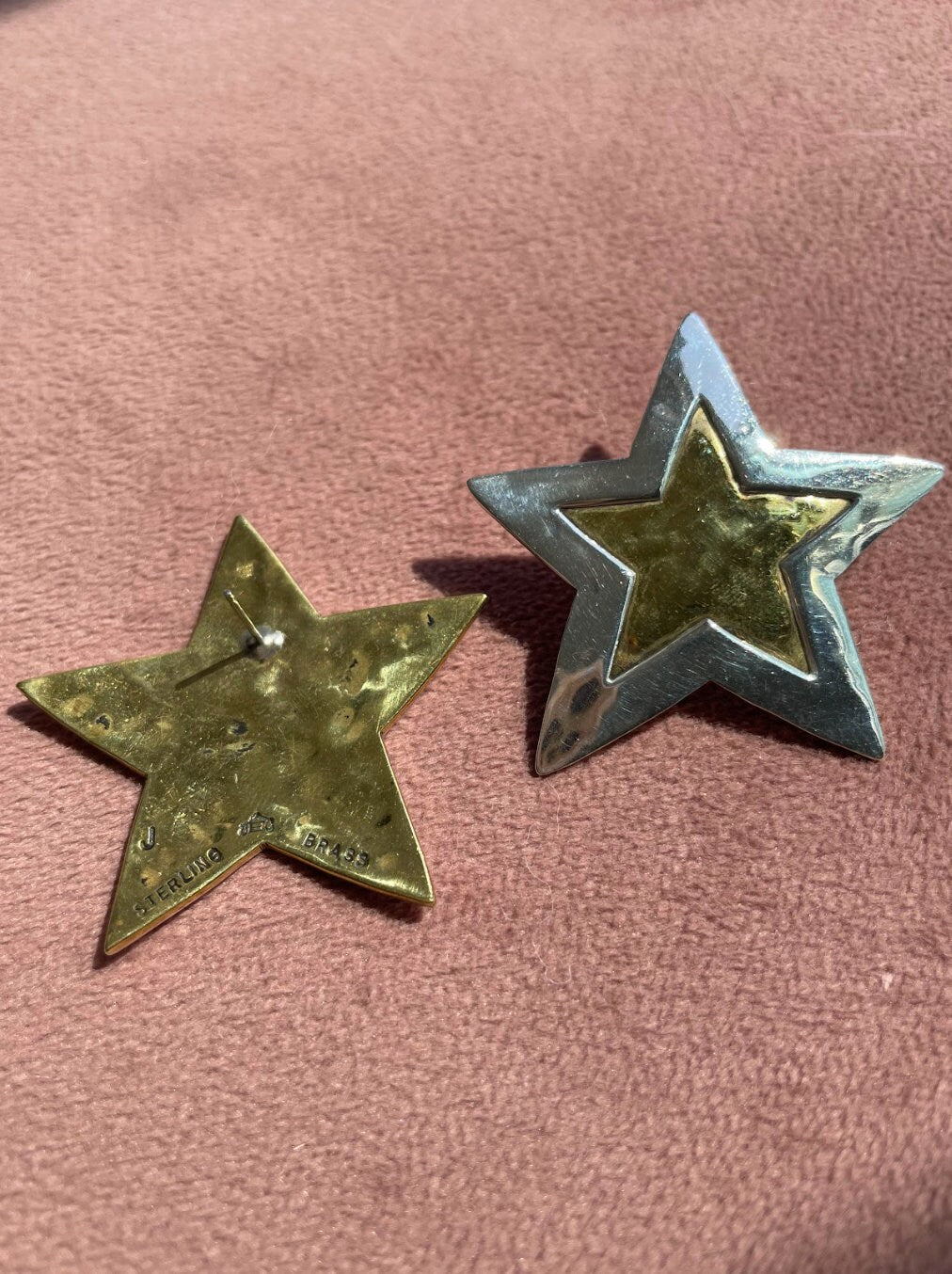 Big Beautiful Vintage Sterling and Brass Star Stud Earrings by Jeep Collins