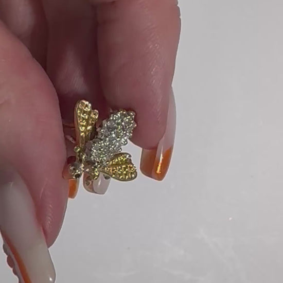 Estate 14K Gold and Diamond Bee Brooch Pin