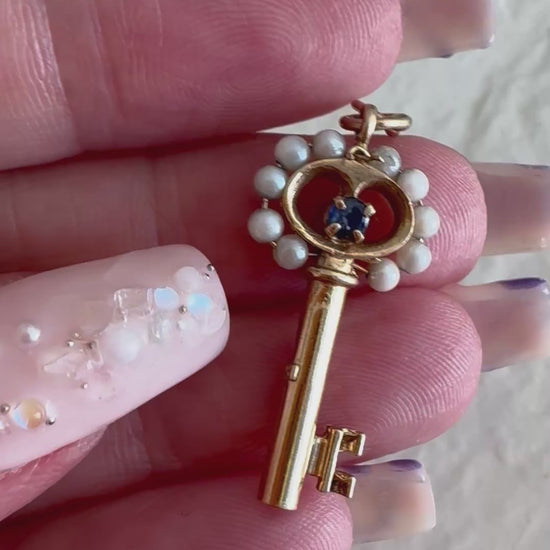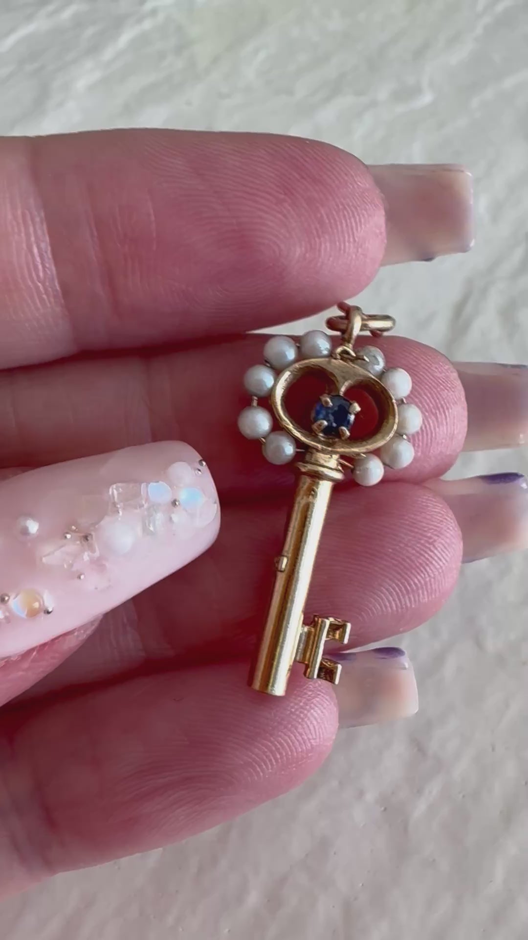 Estate 14K Gold Multi-Gemstone Key Pendant by Colonial Trading Company