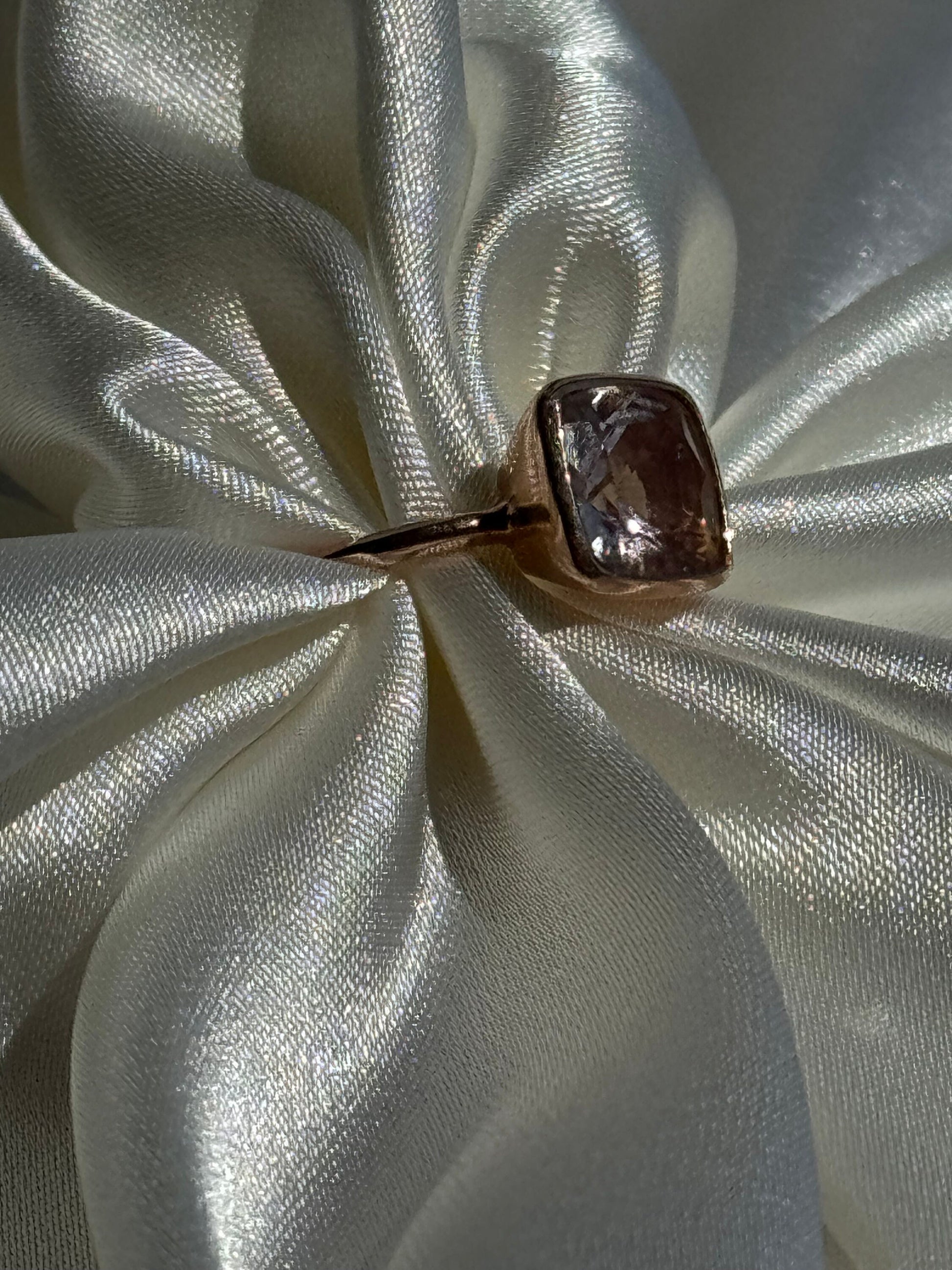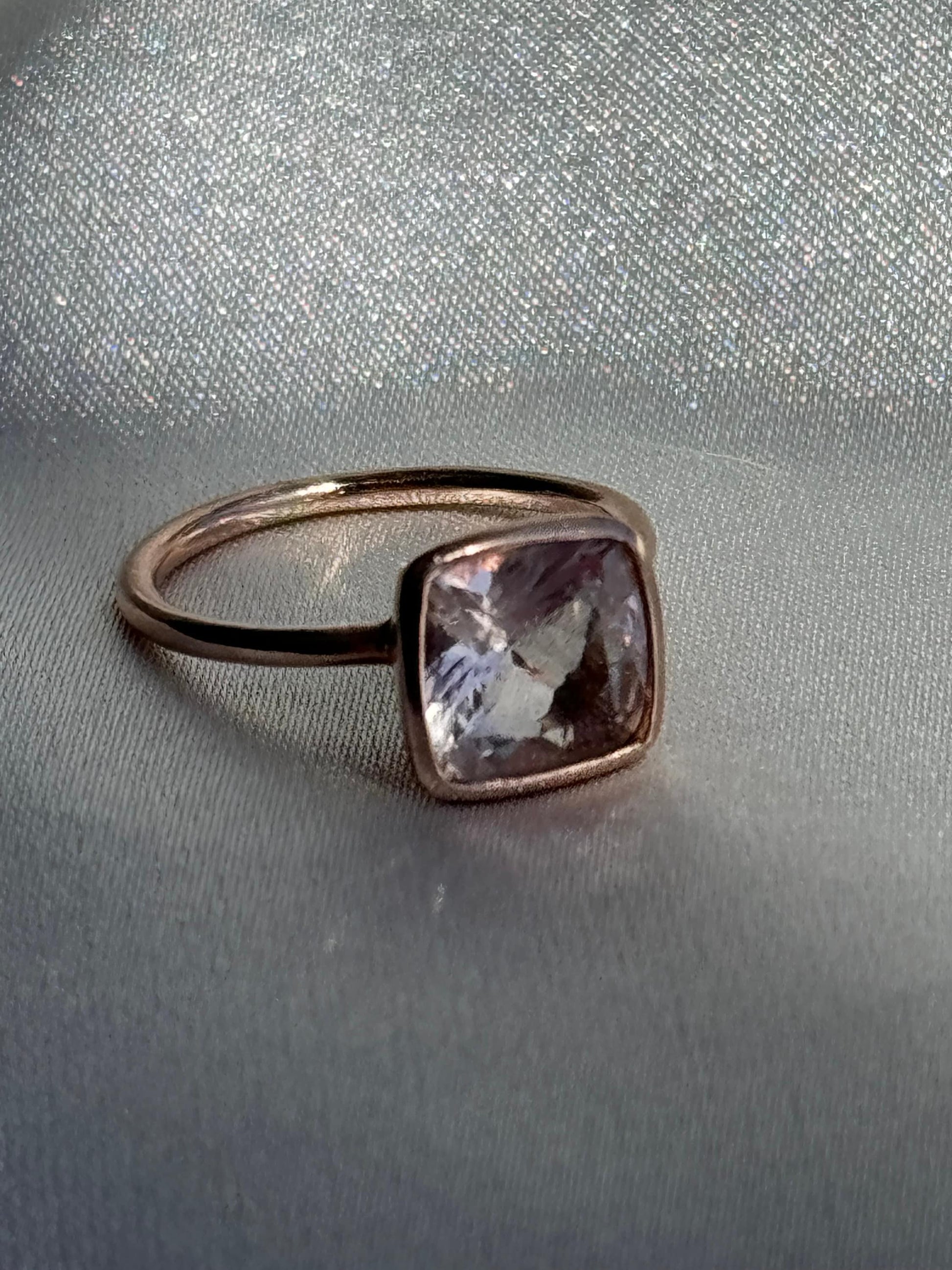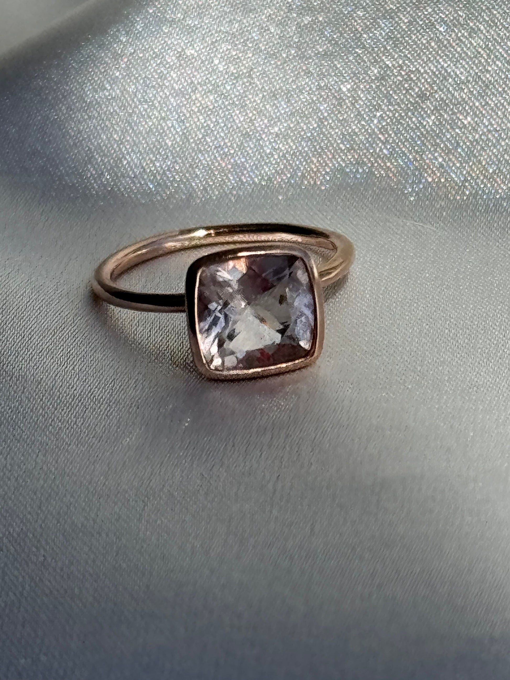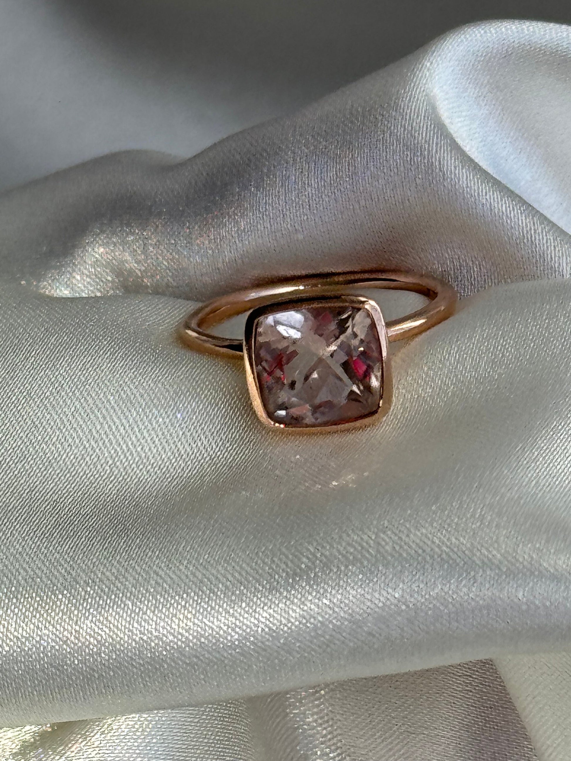 (Pink emerald) safe for day to day wear. The cushion cut sparkles in all kinds of light and would make a spectacular one of a kind engagement ring OR looks good stacked with other bands.