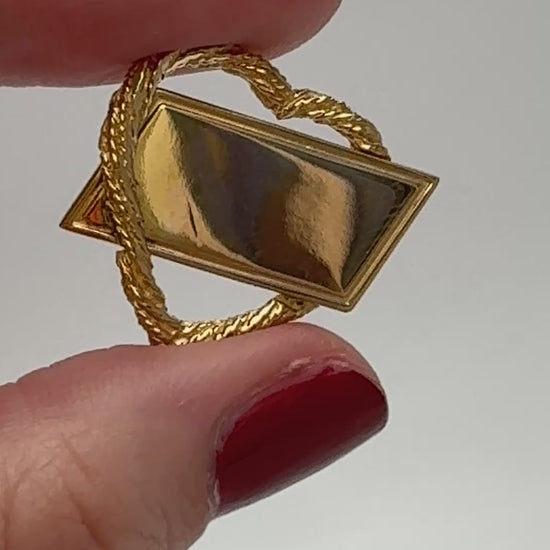 This charming vintage 14k gold pendant showcases exceptional versatility and timeless elegance. Originally crafted as a brooch, this piece has been expertly converted to a pendant, allowing it to be worn as a beautiful necklace while retaining all of its original gold craftsmanship. The heart-shaped rope chain frame creates a romantic silhouette that perfectly complements the rectangular gold cartouche center, offering endless possibilities for personalization through engraving or simply enjoying its clean, minimalist aesthetic.