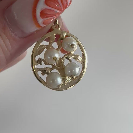 Estate Vintage 14K Gold Tree of Life Pearl Pendant