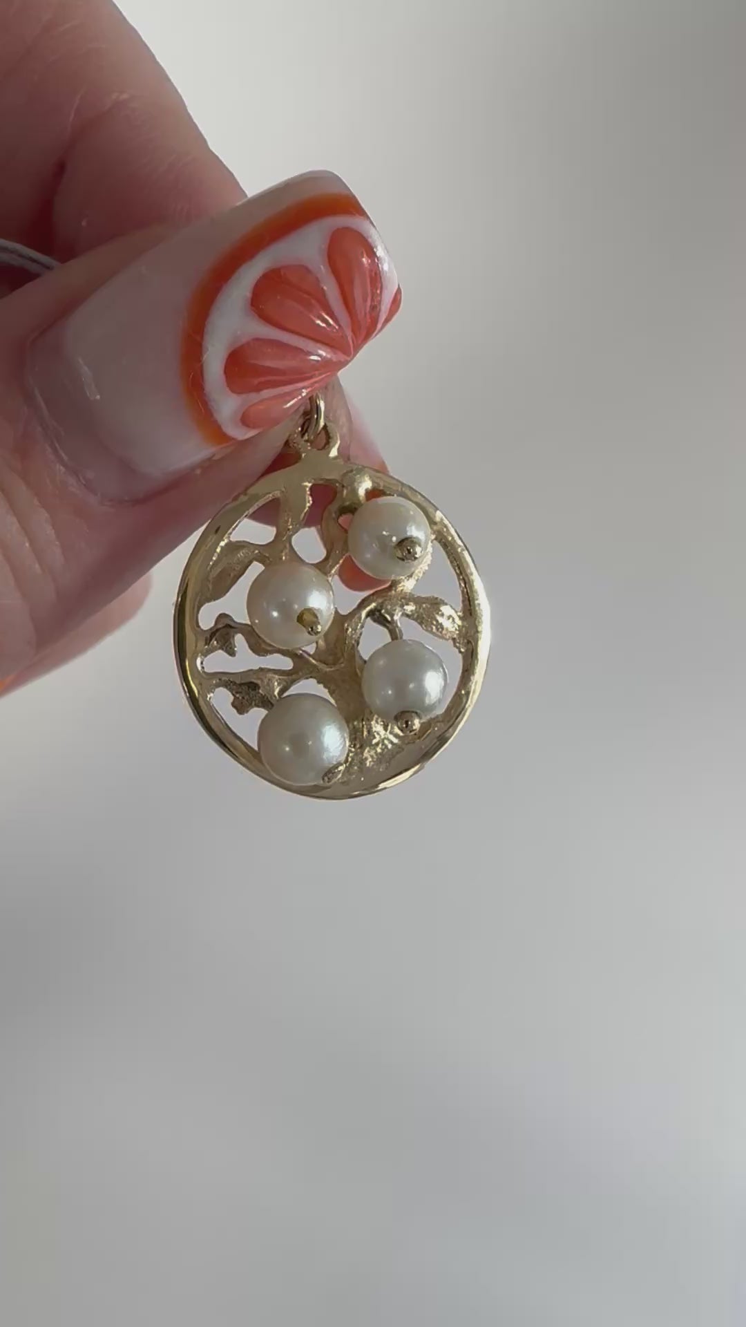 Condition: Estate condition with excellent preservation of both gold and pearls. All pearls are securely set with beautiful luster intact. 14K gold shows minimal wear consistent with gentle use - the kind of patina that adds character without compromising beauty. Bail is sturdy and properly formed for secure wear.