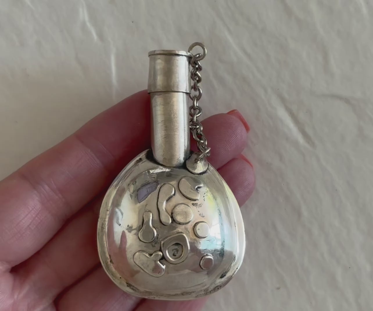 Estate Vintage Sterling Silver Native American Tobacco Canteen Bottle Pendant Southwestern Jewelry