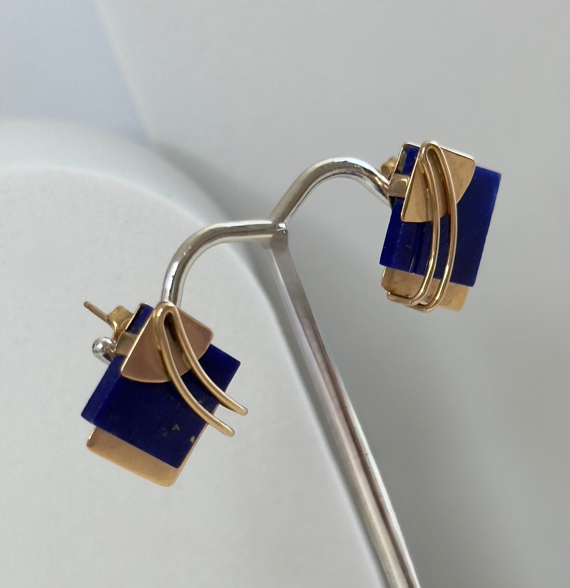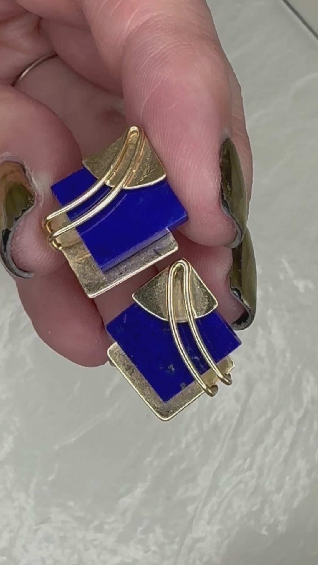 These magnificent stud earrings celebrate the natural beauty of lapis lazuli enhanced with gold, creating pieces that are both elegant and eternally stylish.