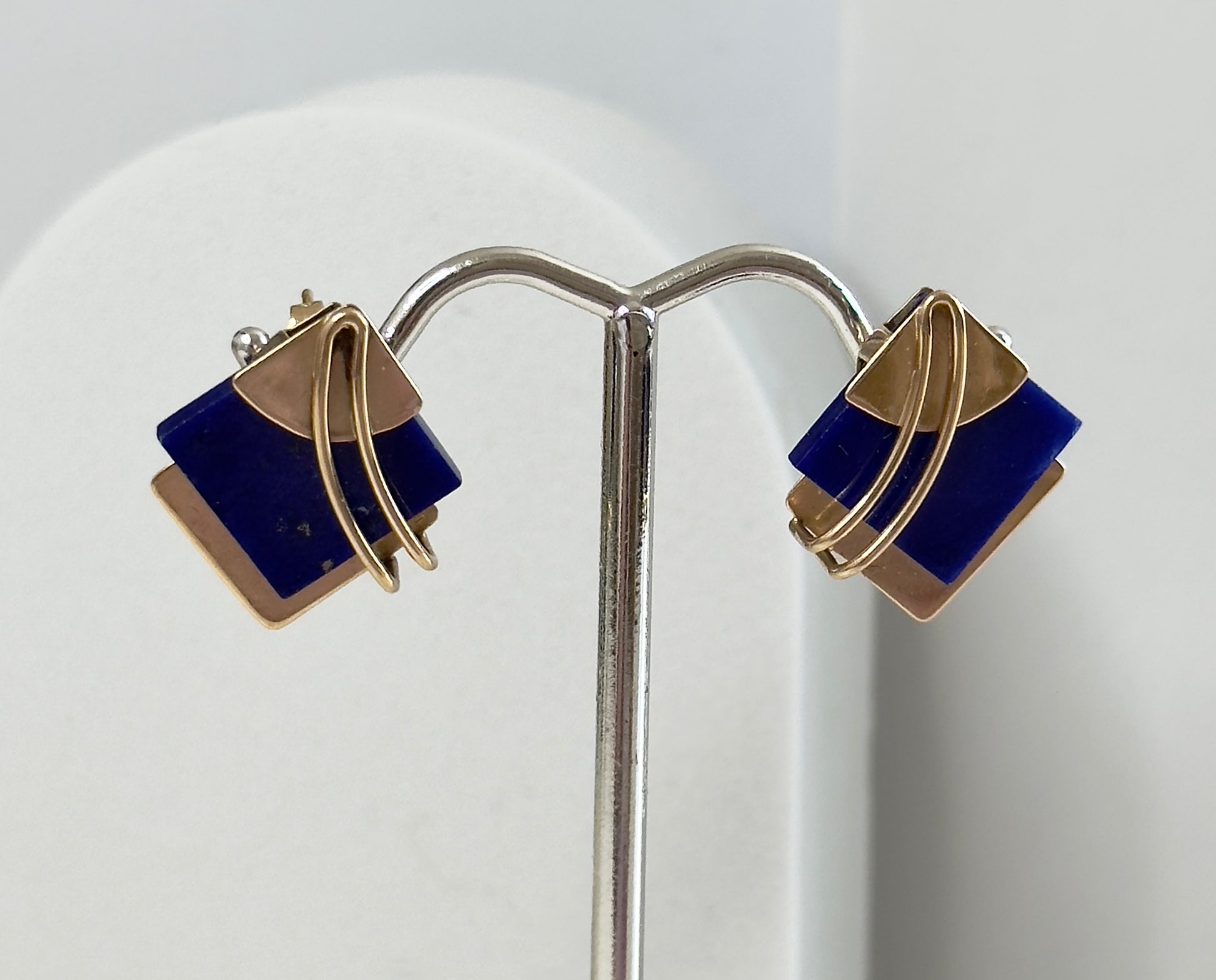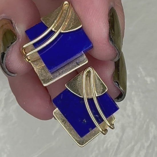 Estate condition with excellent lapis lazuli stones showing vibrant color and beautiful gold flake distribution. 14K gold settings show minimal wear consistent with age. Post and butterfly backs function securely.