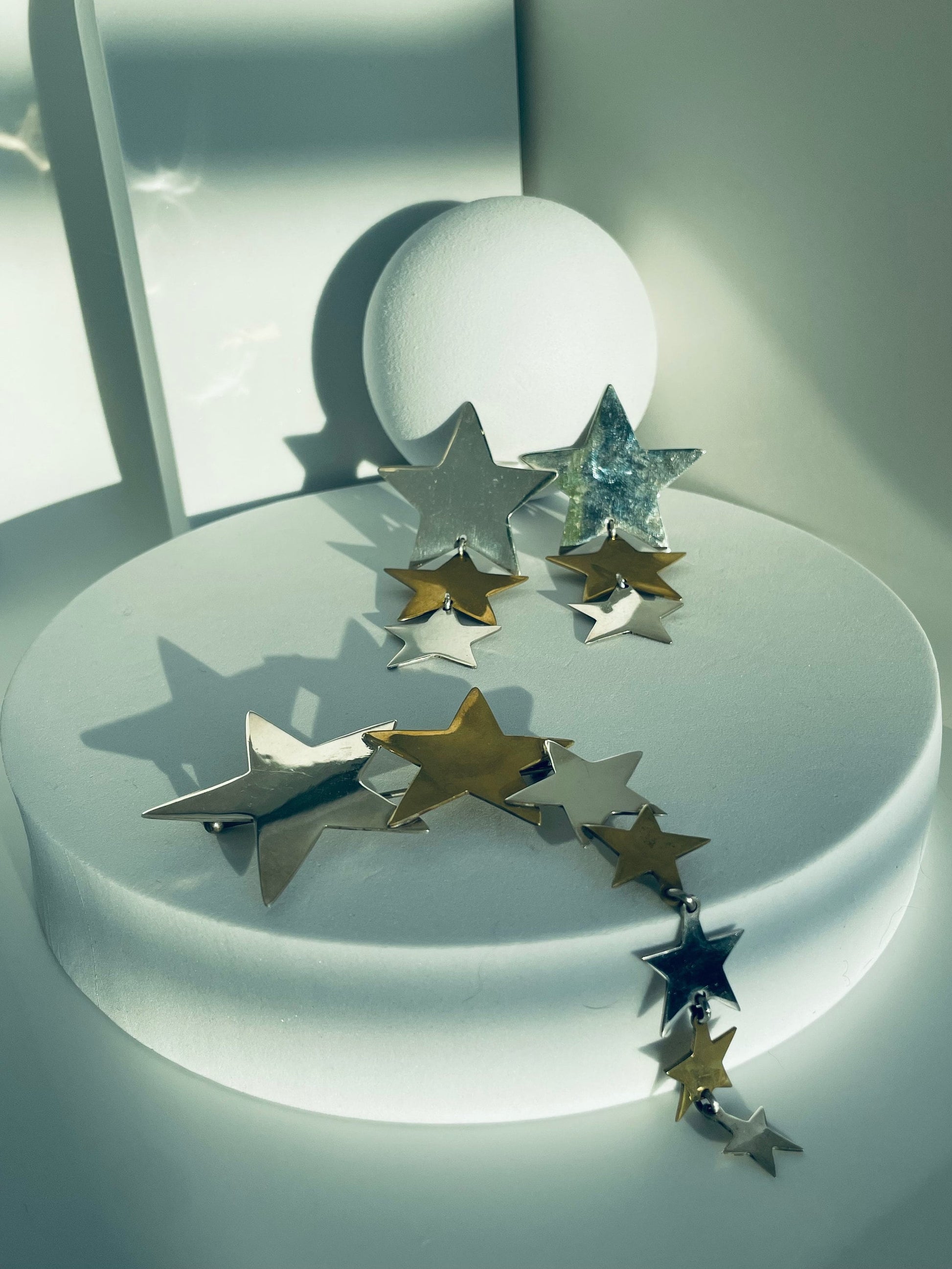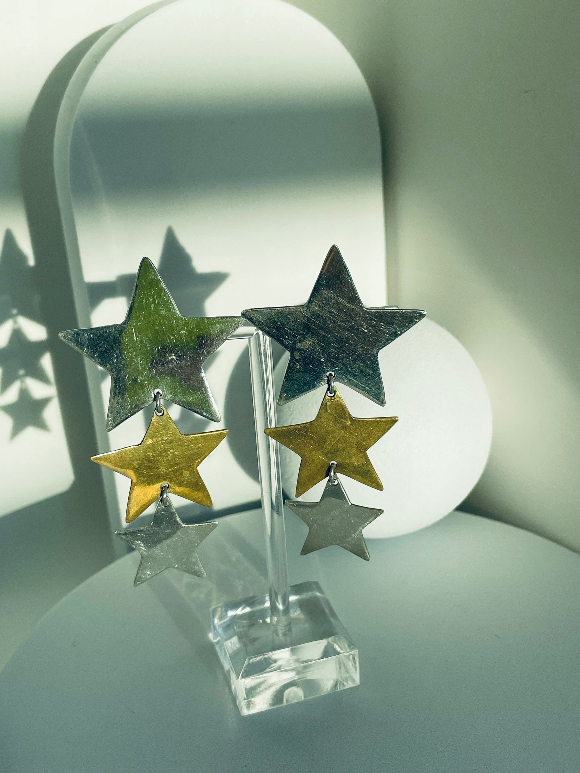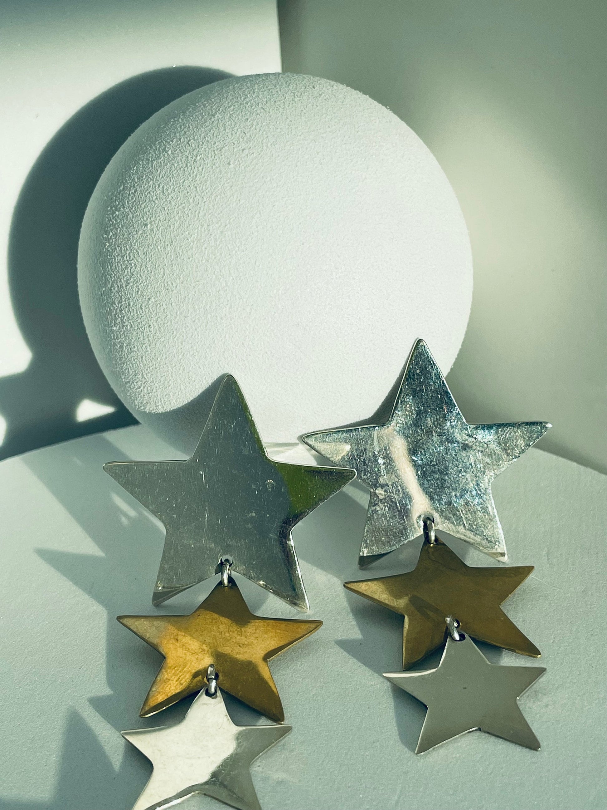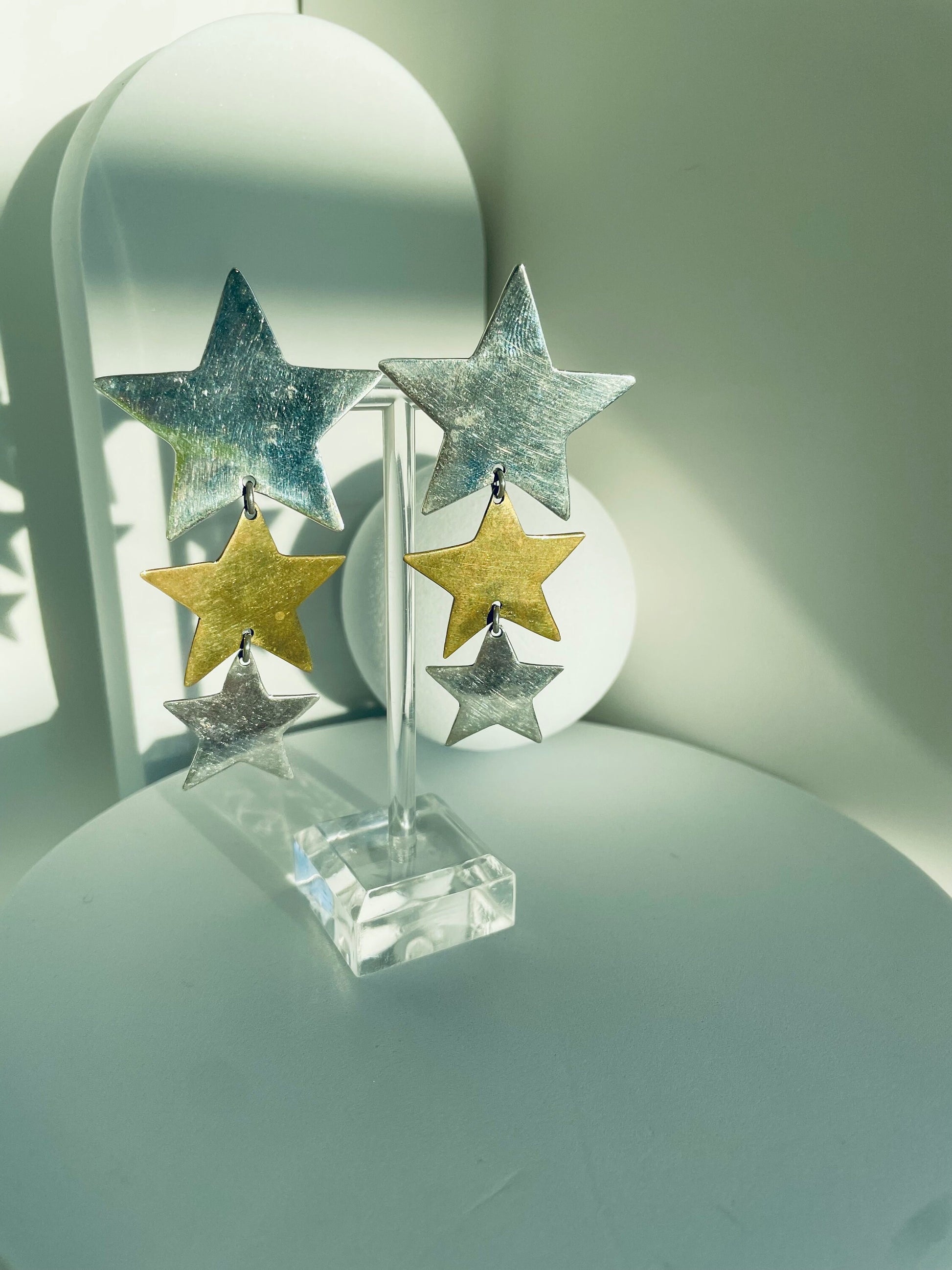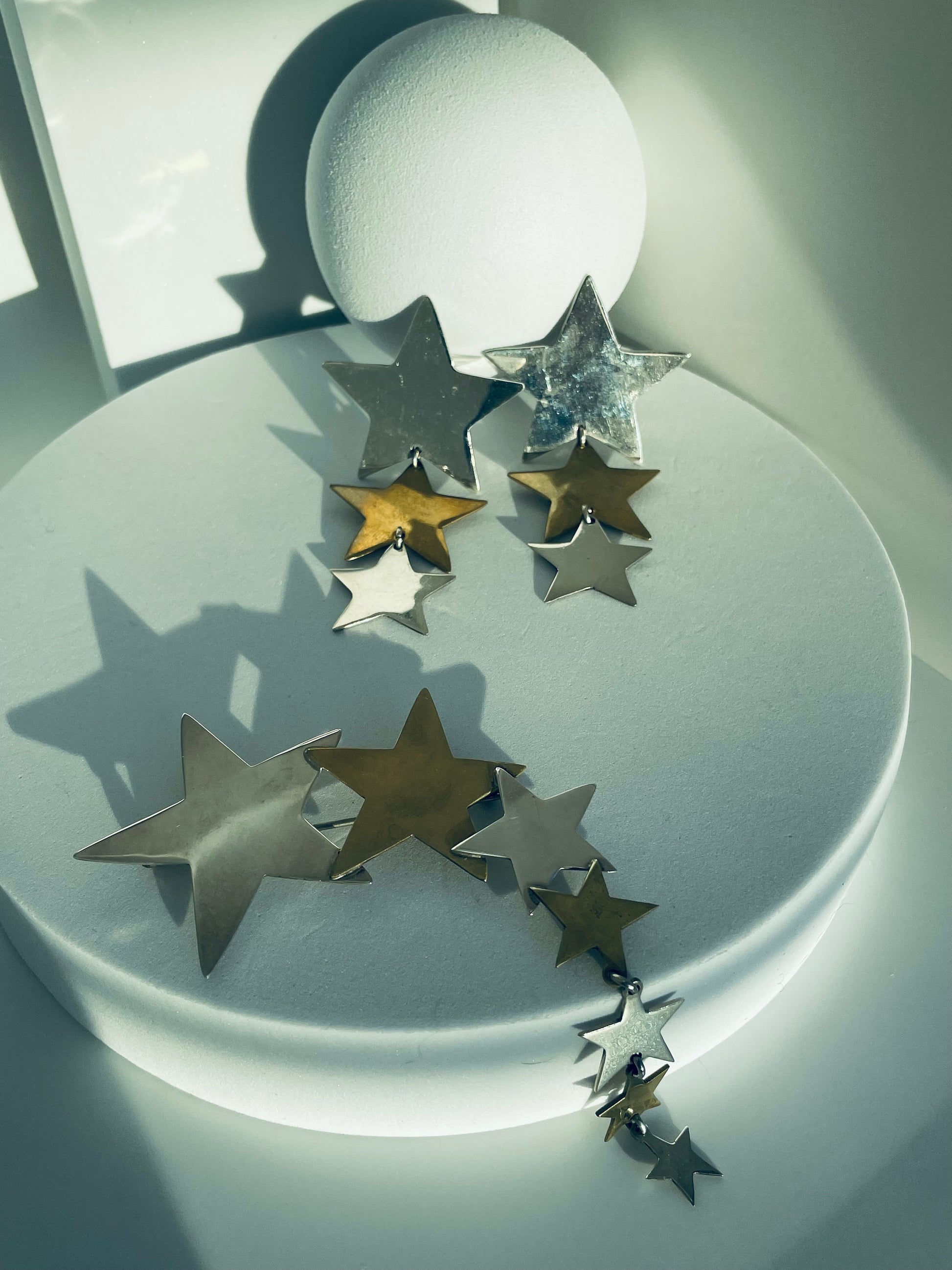 This set is beyond! The stars are large and sparsely. While the earrings are pierced they do help to take pressure off of your ears.