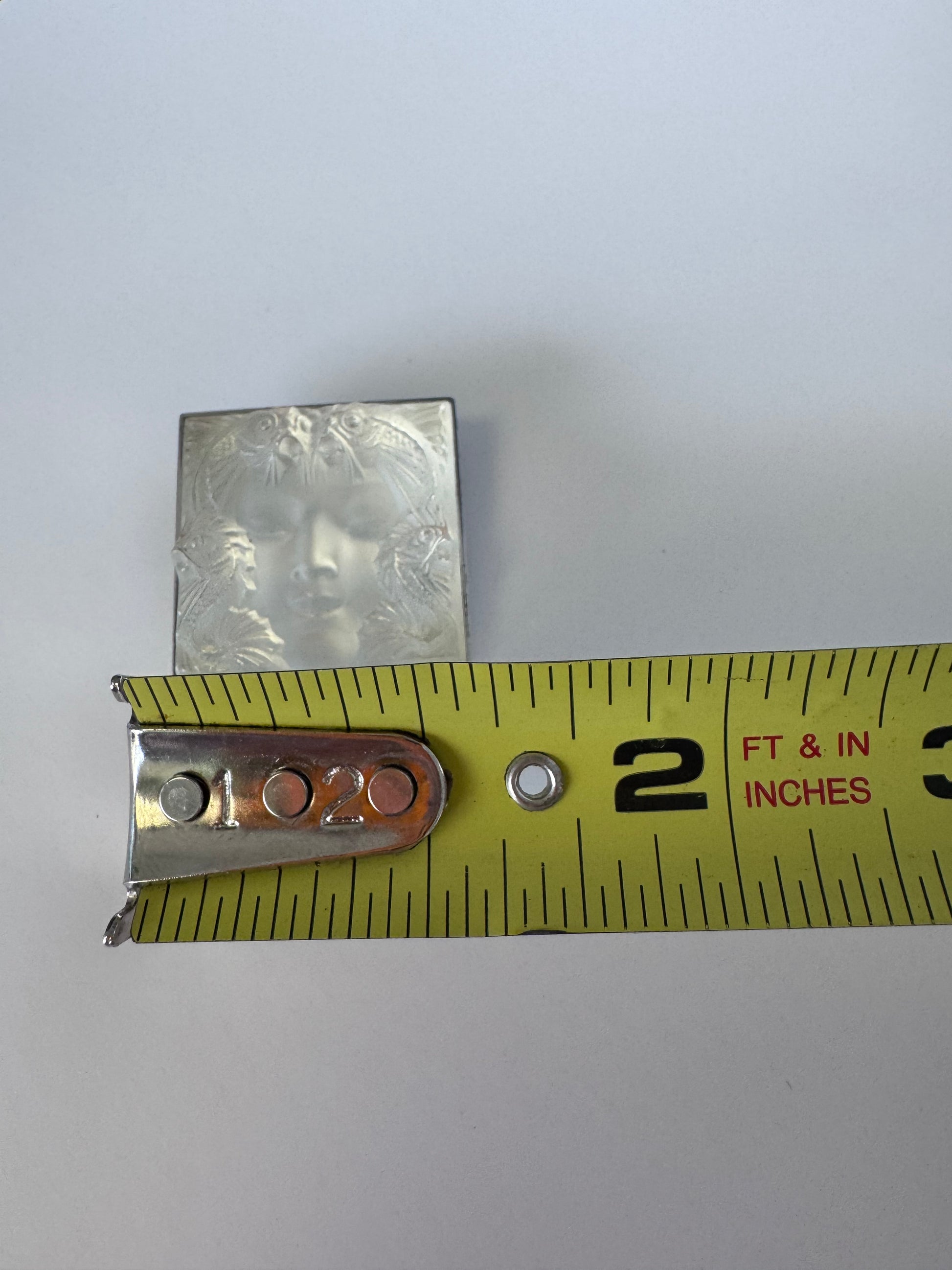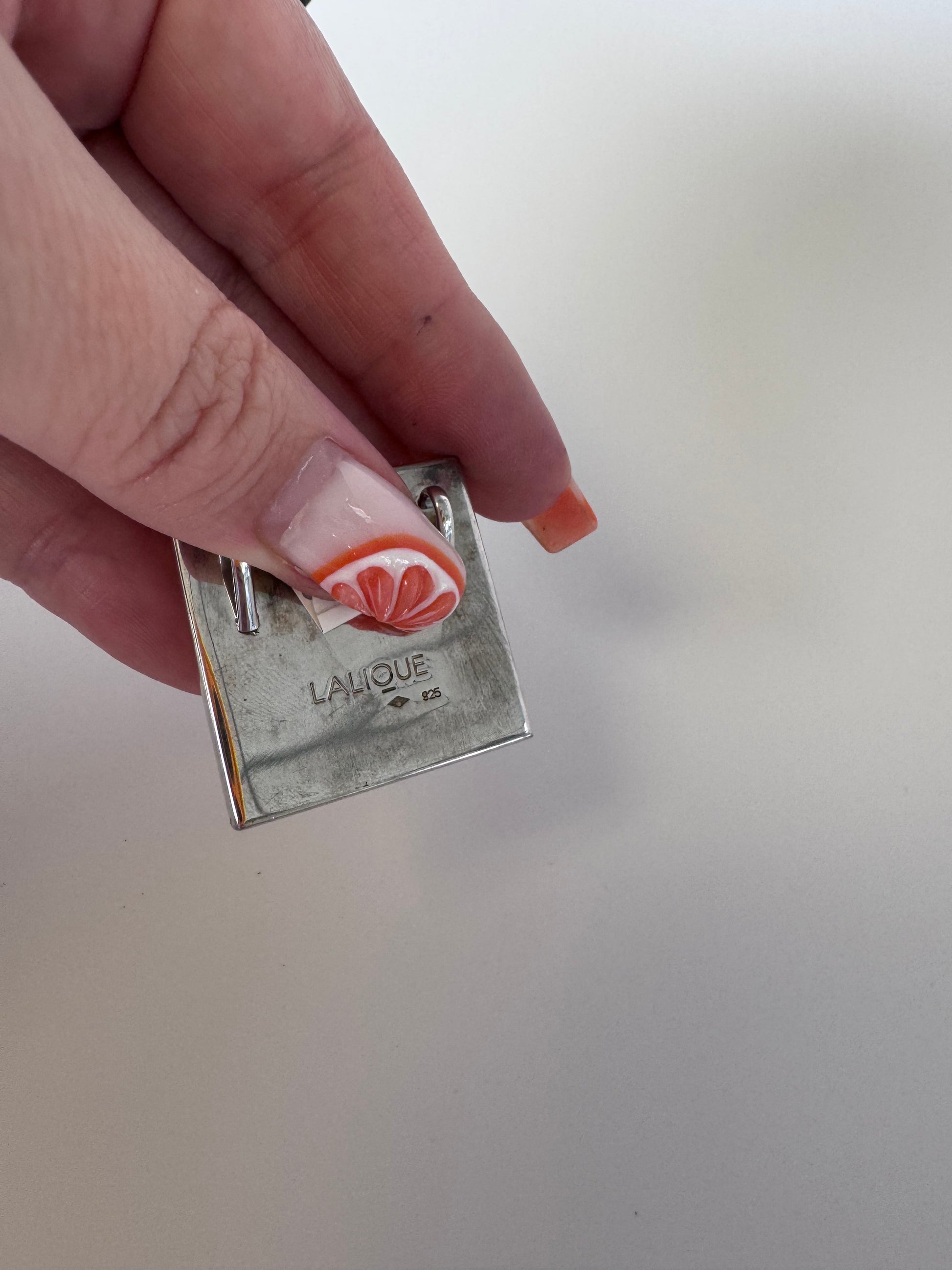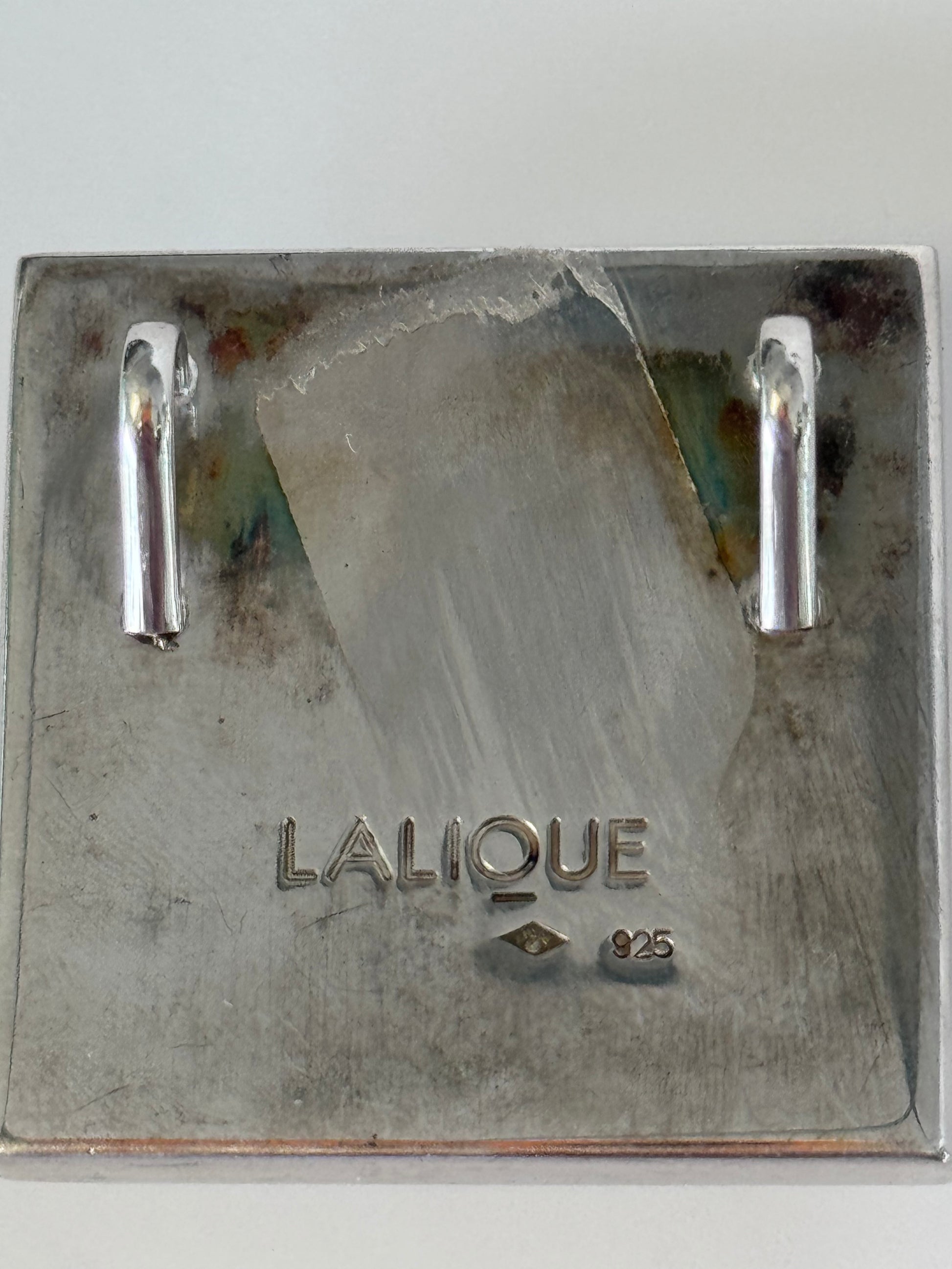 Condition: Estate condition with excellent preservation. Crystal retains beautiful frosted finish with all details crisp and clear. Sterling silver backing shows minimal wear with clear "LALIQUE 925" marking visible. No chips, cracks, or cloudiness to crystal. This appears unworn or very gently worn, maintaining that luminous quality Lalique crystal is famous for the world over.