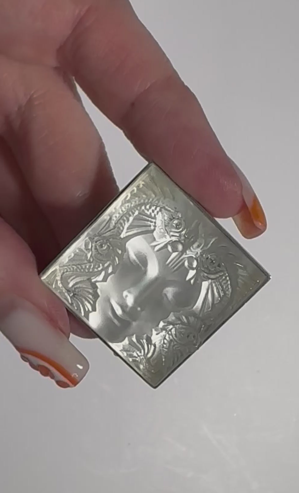 Here's a piece that puts you in direct contact with one of Lalique's most iconic designs. The "Masque de Femme" features a serene woman's face surrounded by flowing aquatic motifs - originally created by René Lalique in 1935 as part of a fountain design, it became so beloved that it's been reinterpreted across decades in various forms.
