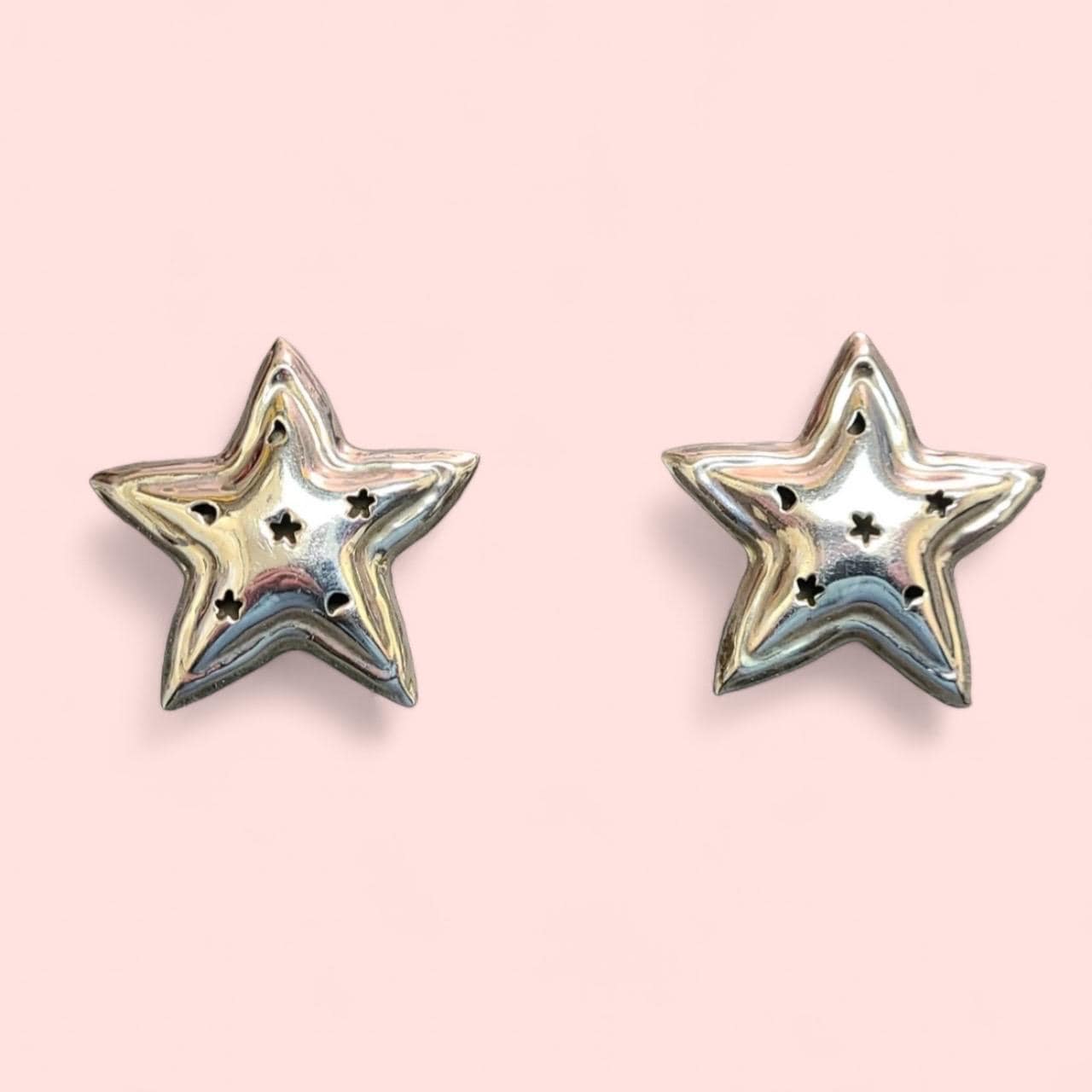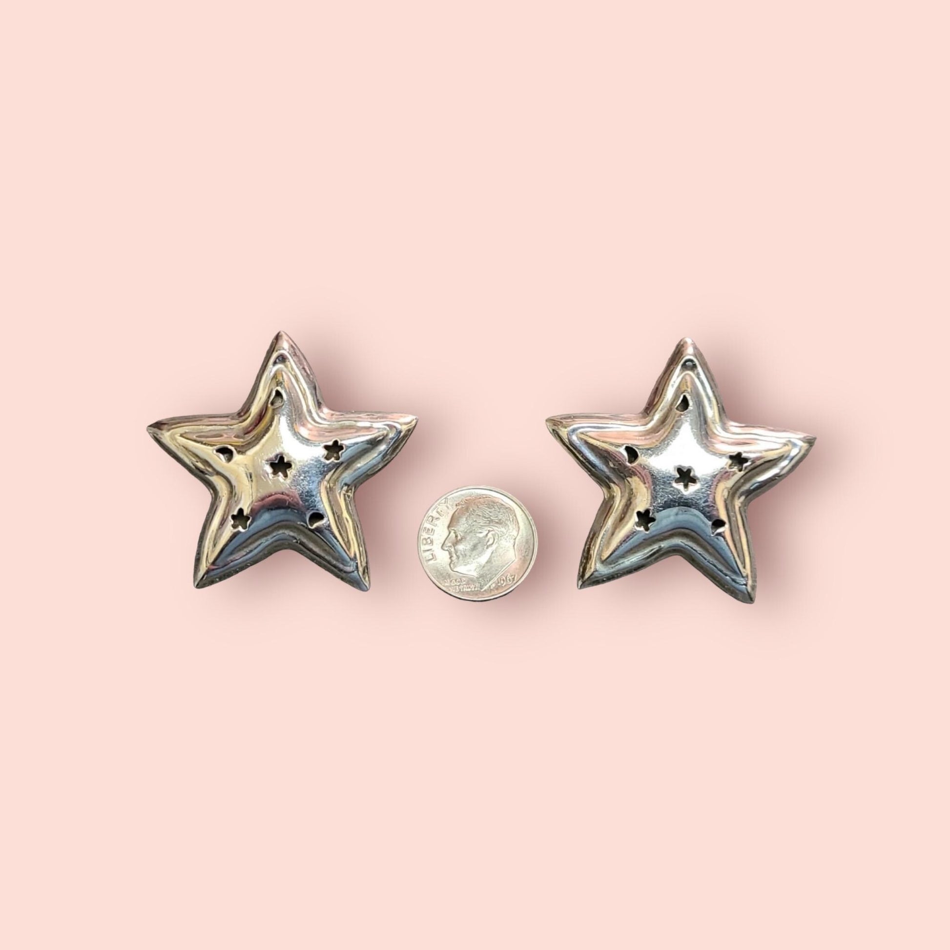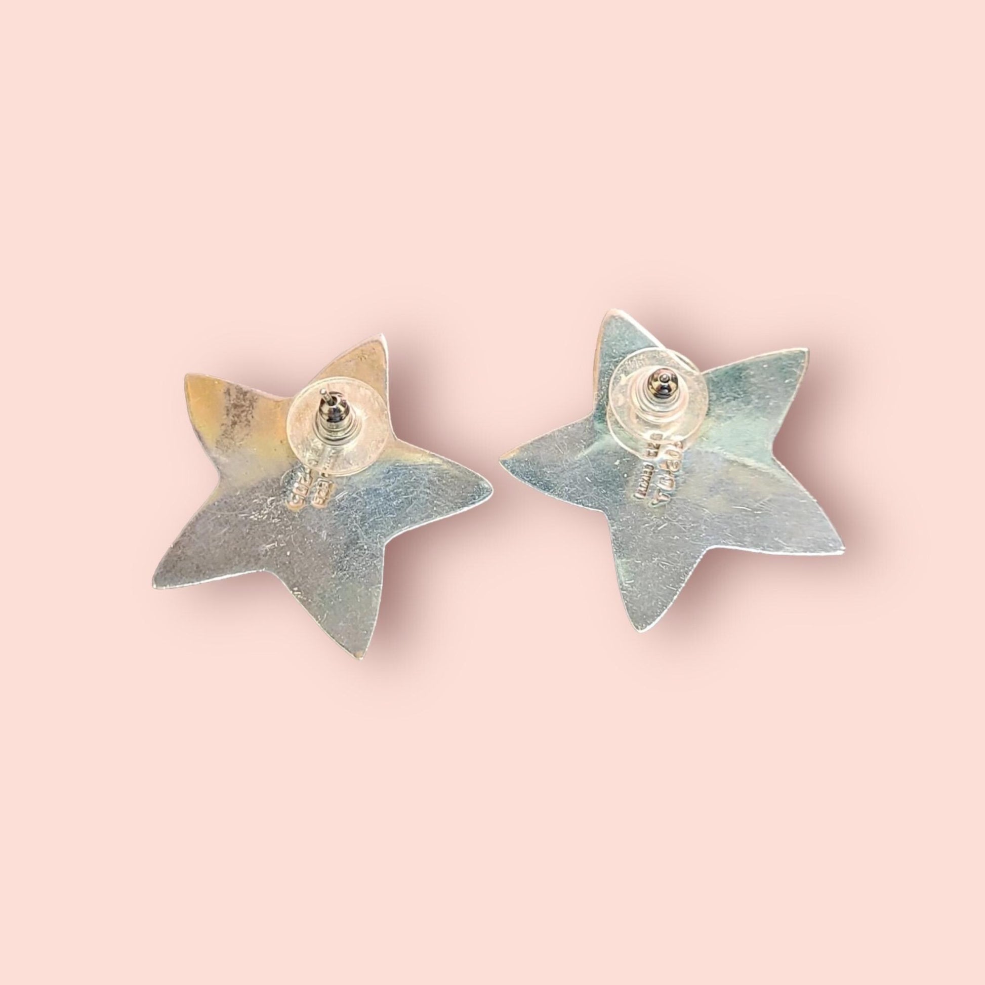 Large Vintage Taxco Mexico Stamped Star Earrings in Sterling Silver