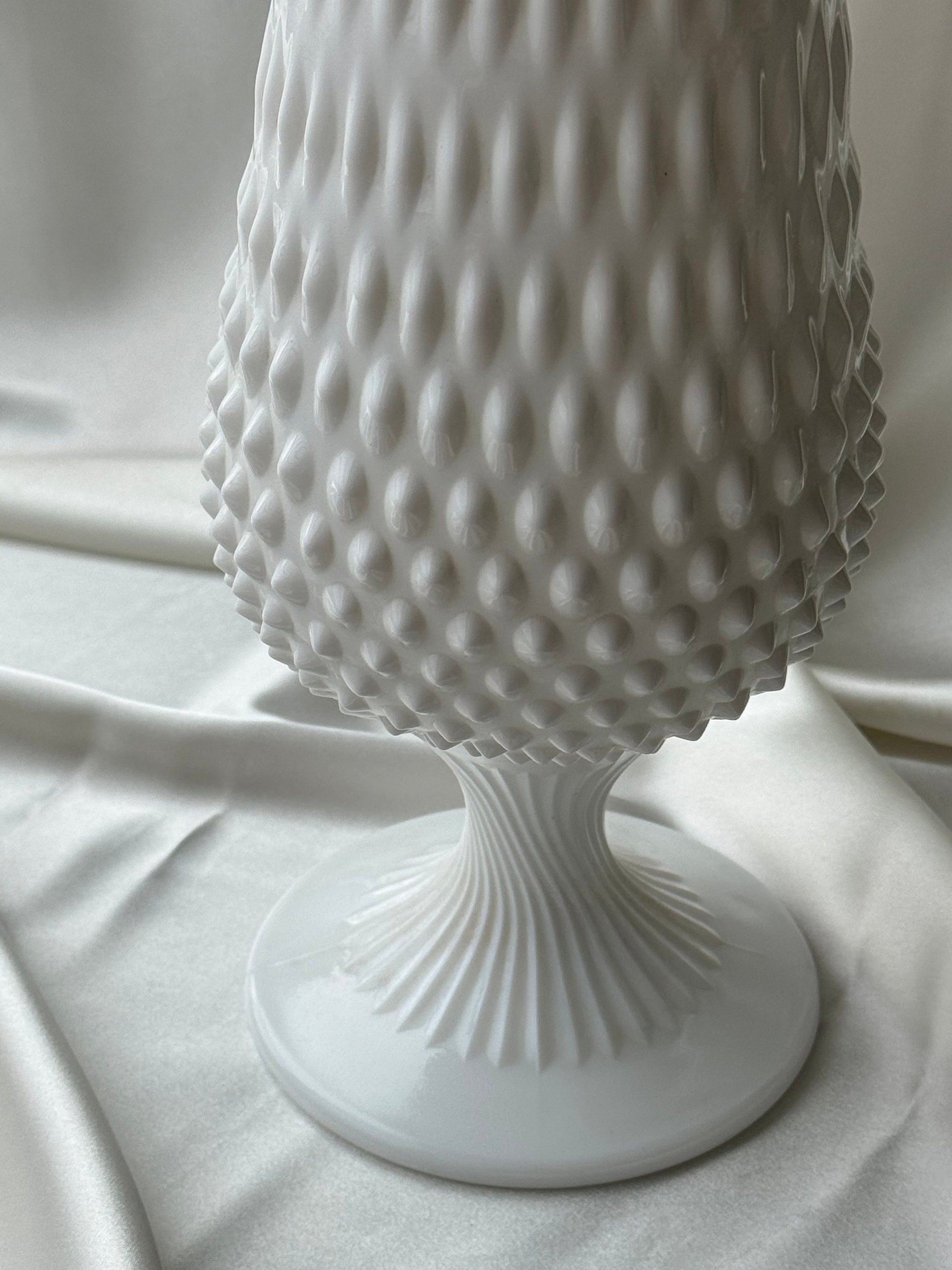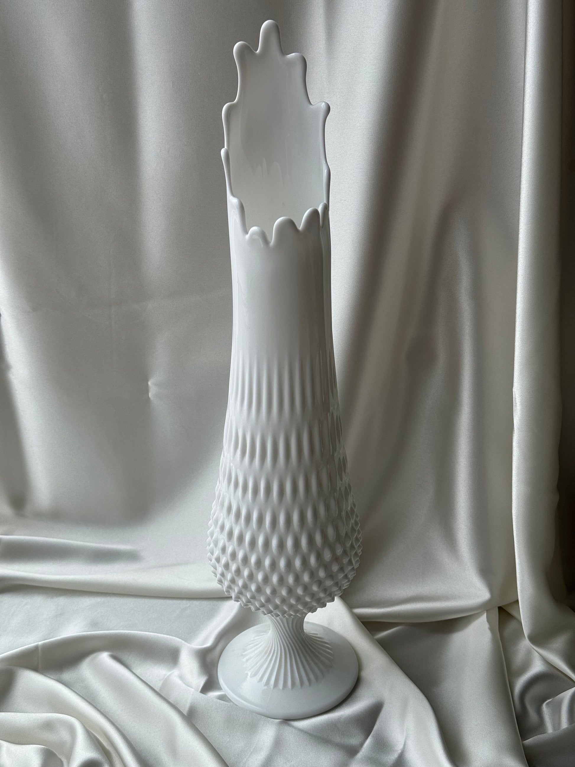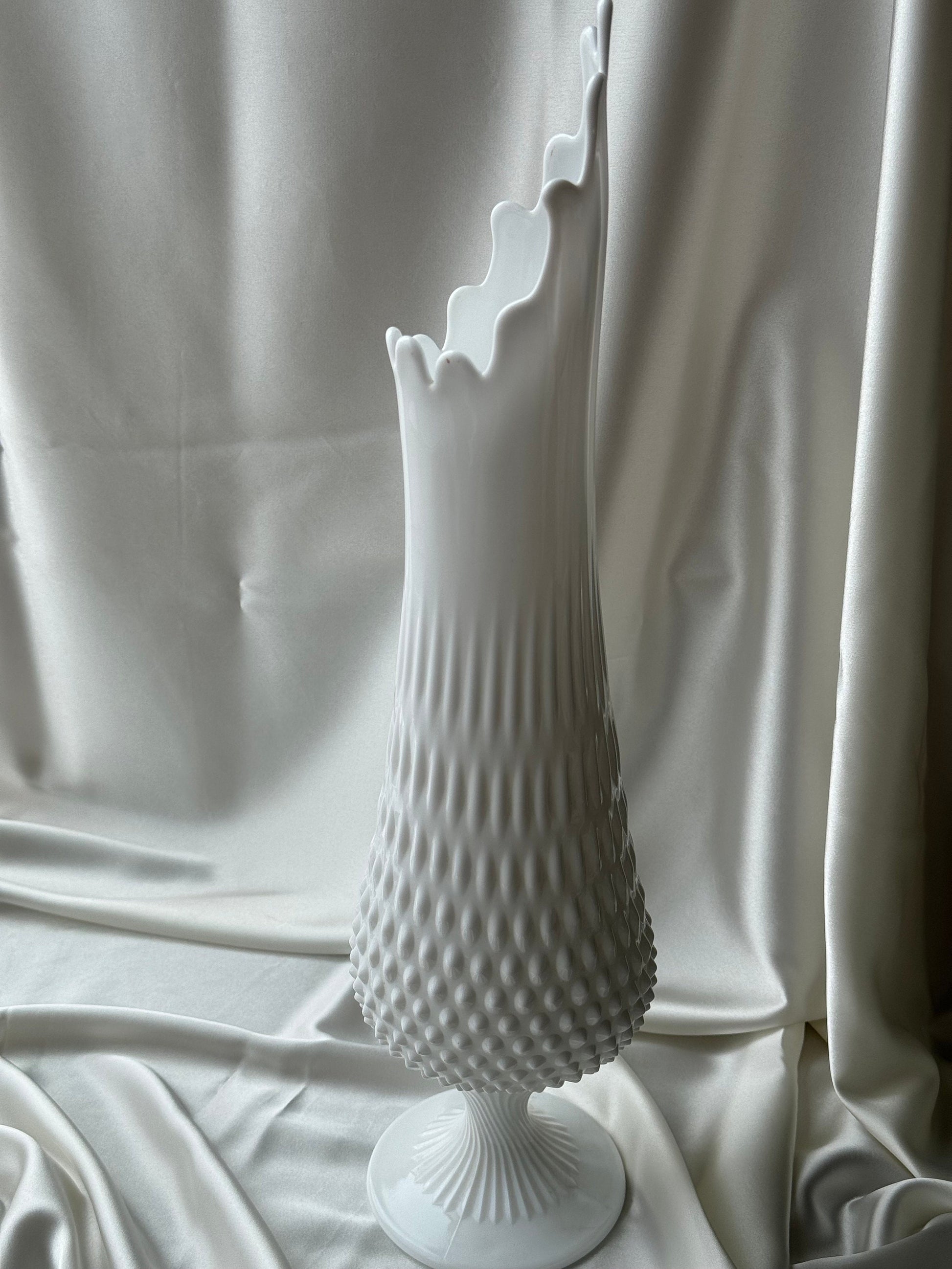 MCM Large Fenton Footed Hobnail Milkglass Wide Mouth Swung Vase 20”