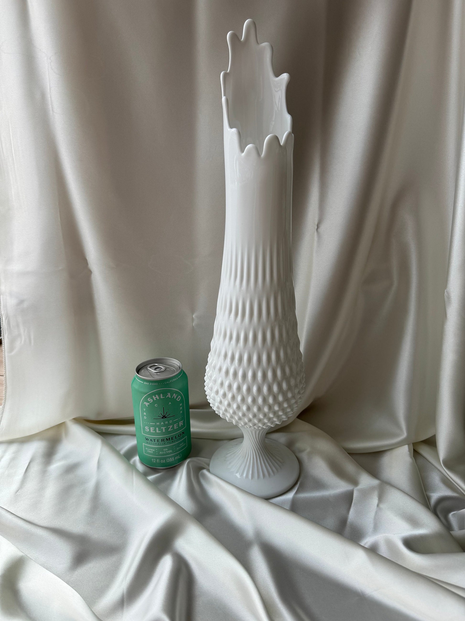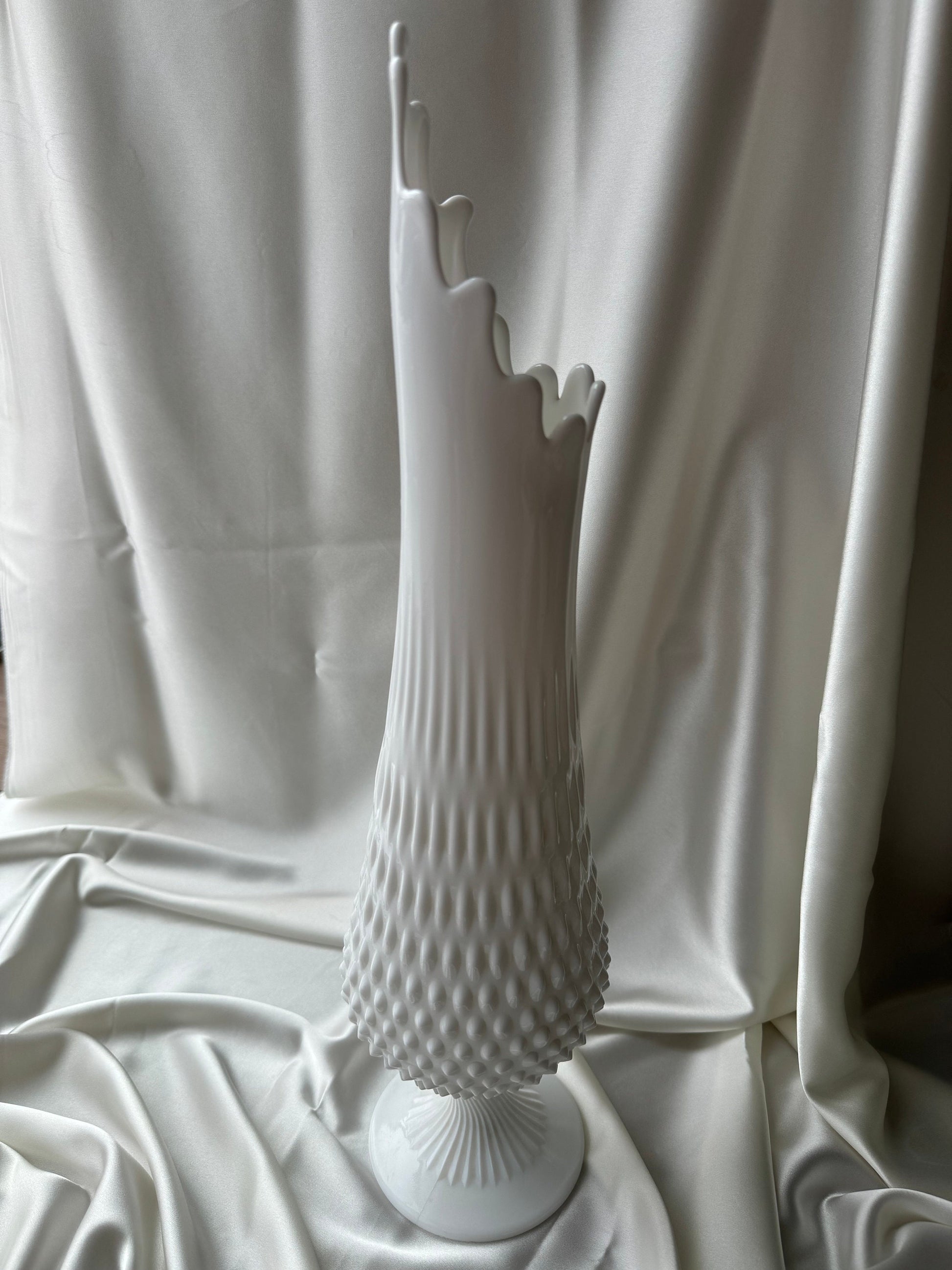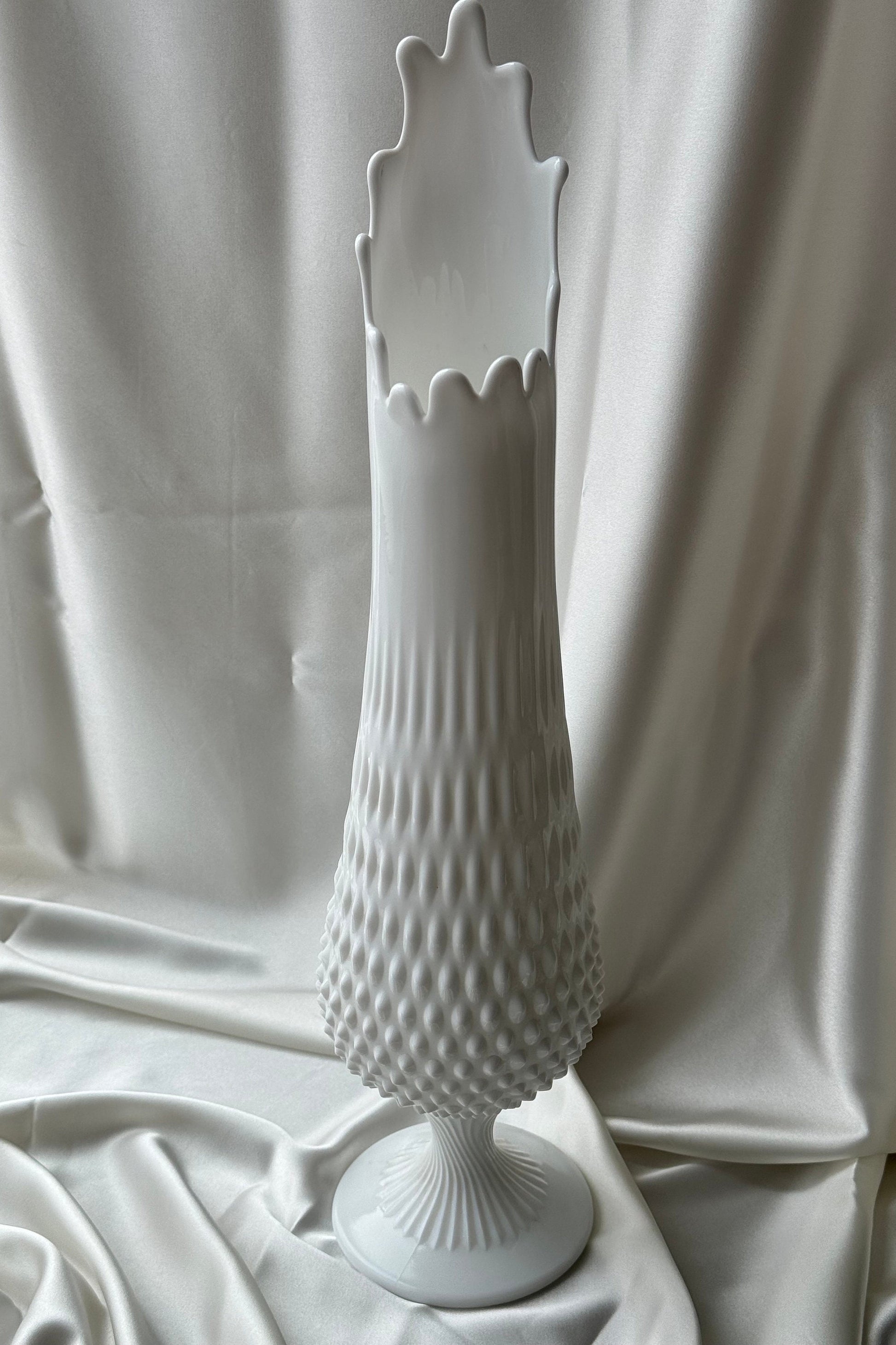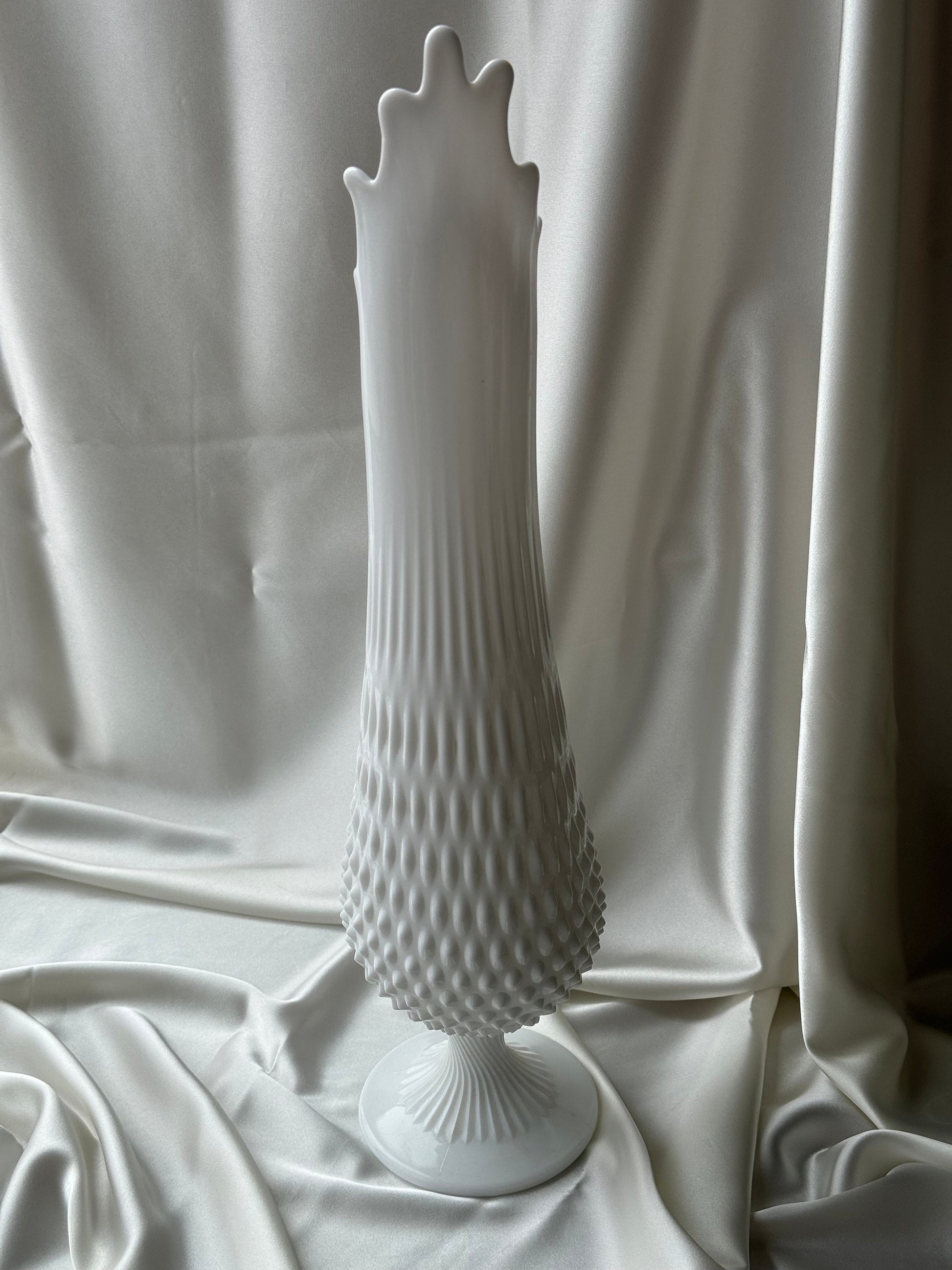 MCM Large Fenton Footed Hobnail Milkglass Wide Mouth Swung Vase 20”