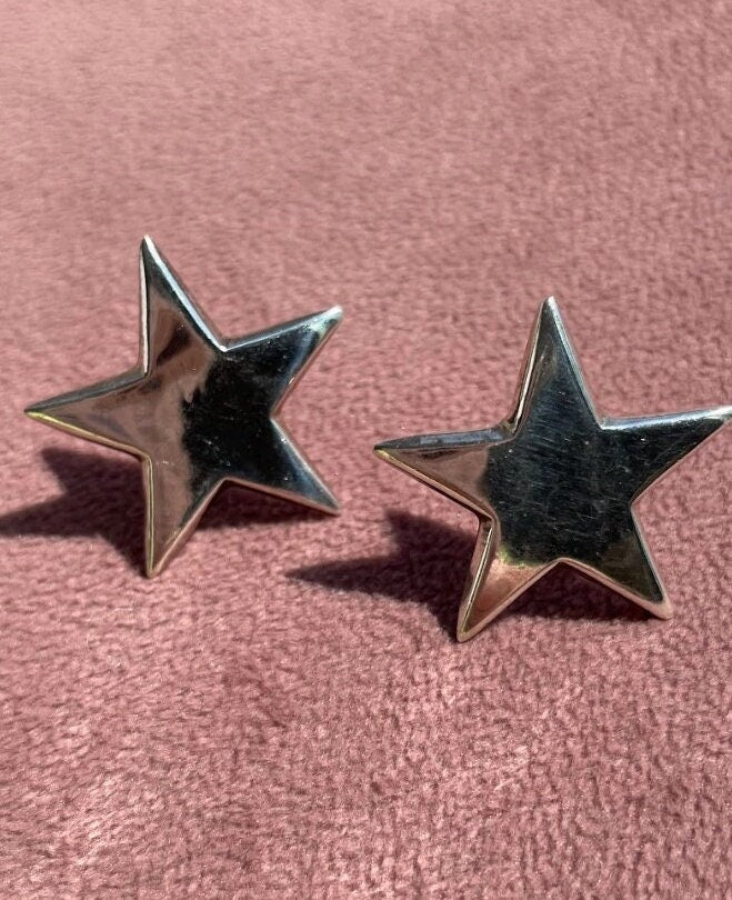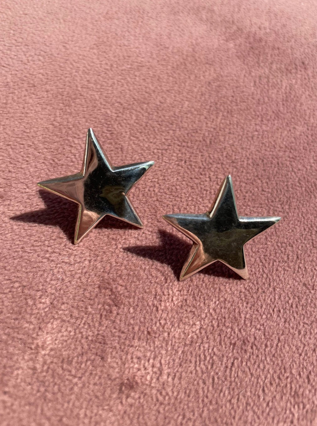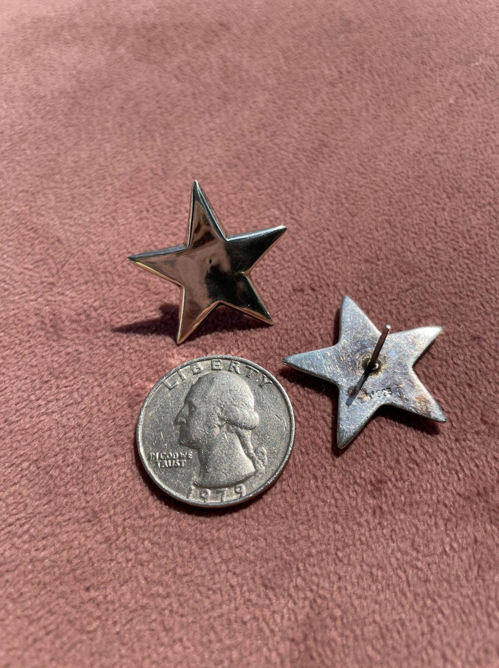 Shiny Vintage Sterling Silver Star Stud Earrings