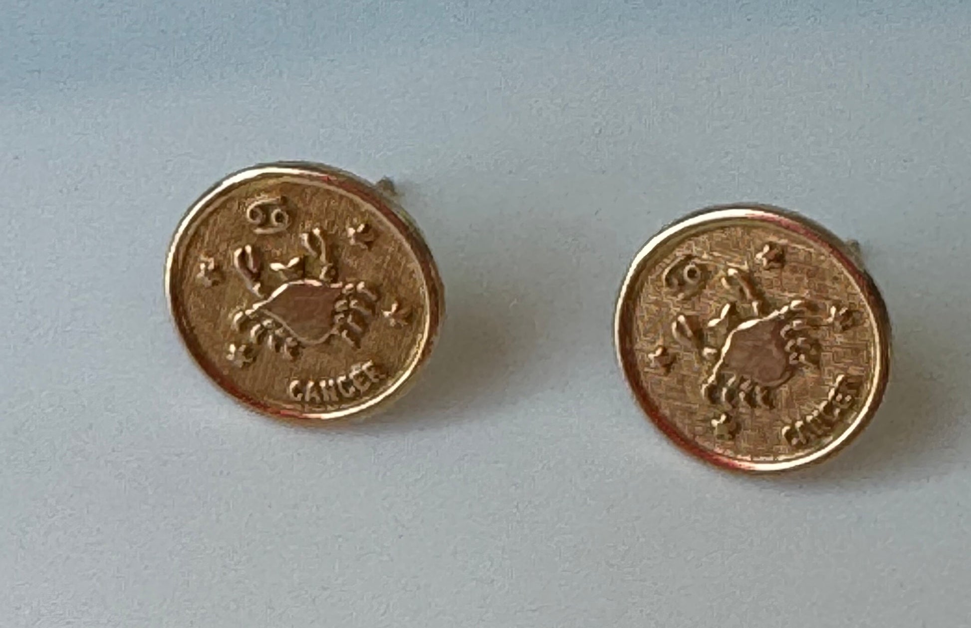Vintage 14k Cancer Crab Zodiac Earrings Astrology