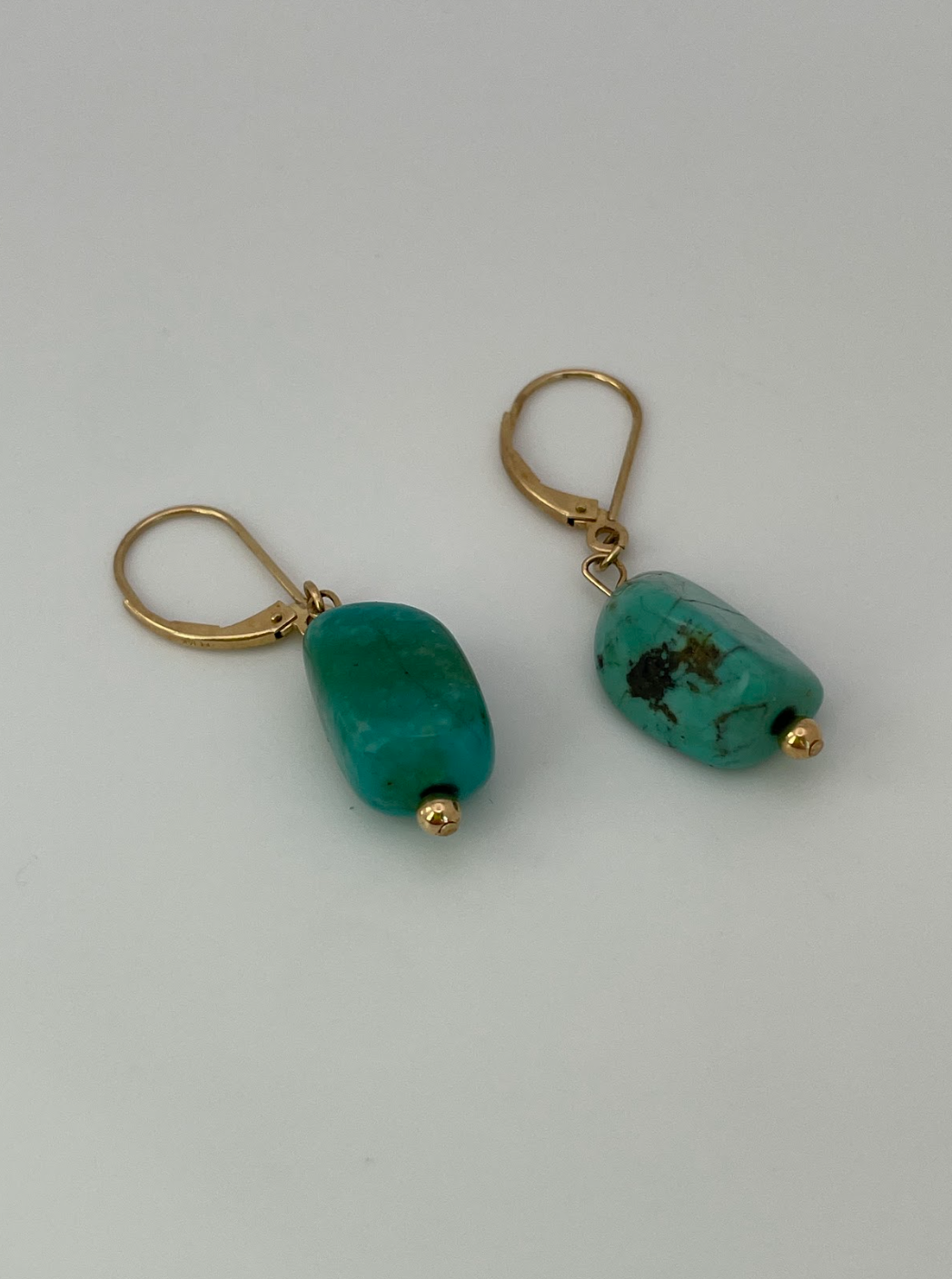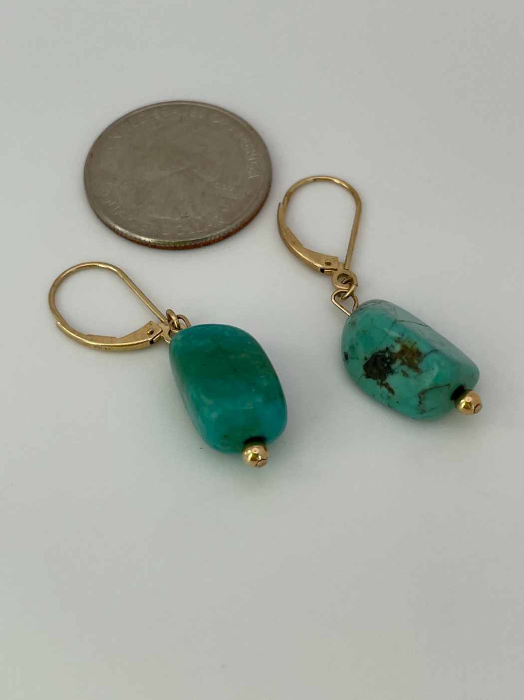 Vintage 14k Gold and Turquoise Dangle Earrings