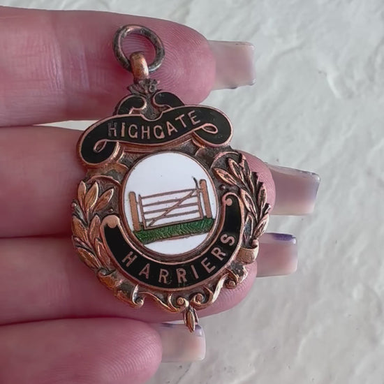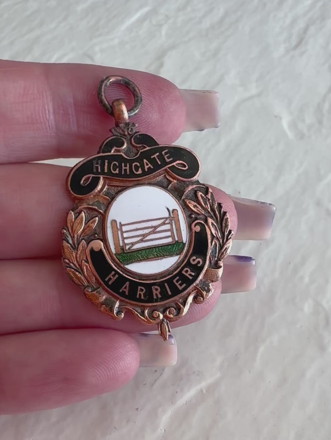 Vintage 1953 Bronze Enamel Highgate Harriers Running Medal Watch Fob