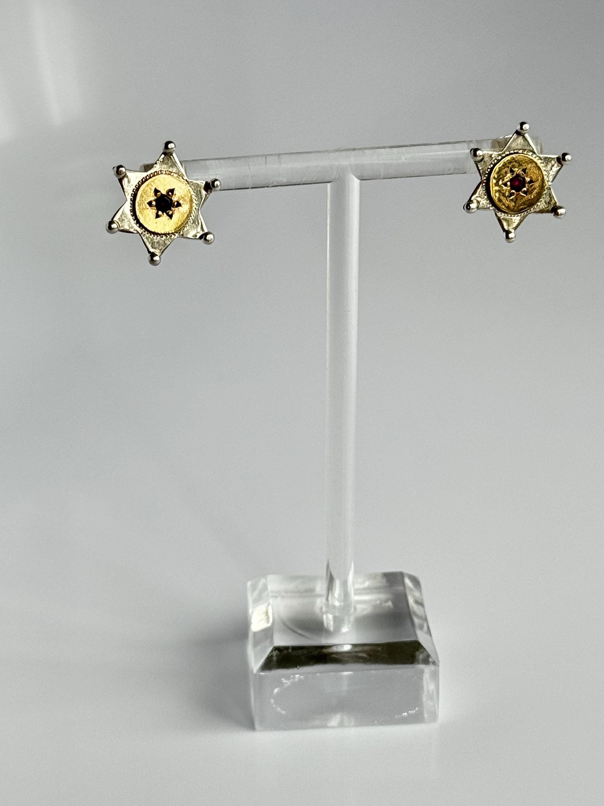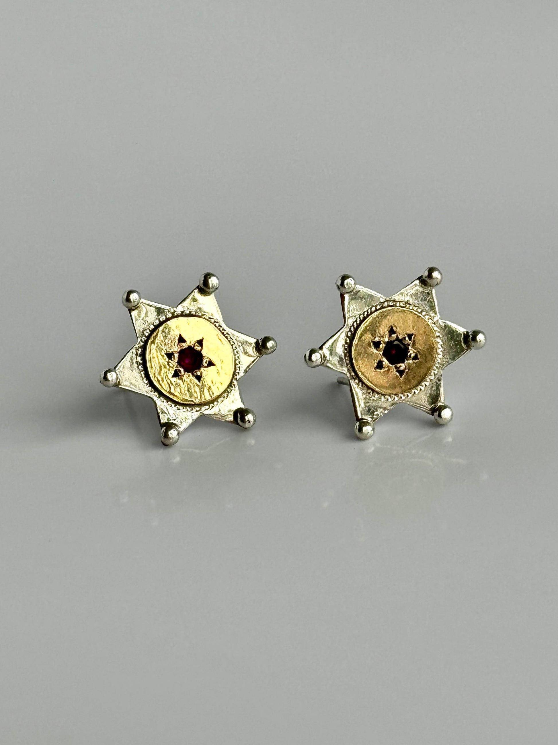 Vintage Bohemian Star of David Earrings in Sterling 14k and Garnet