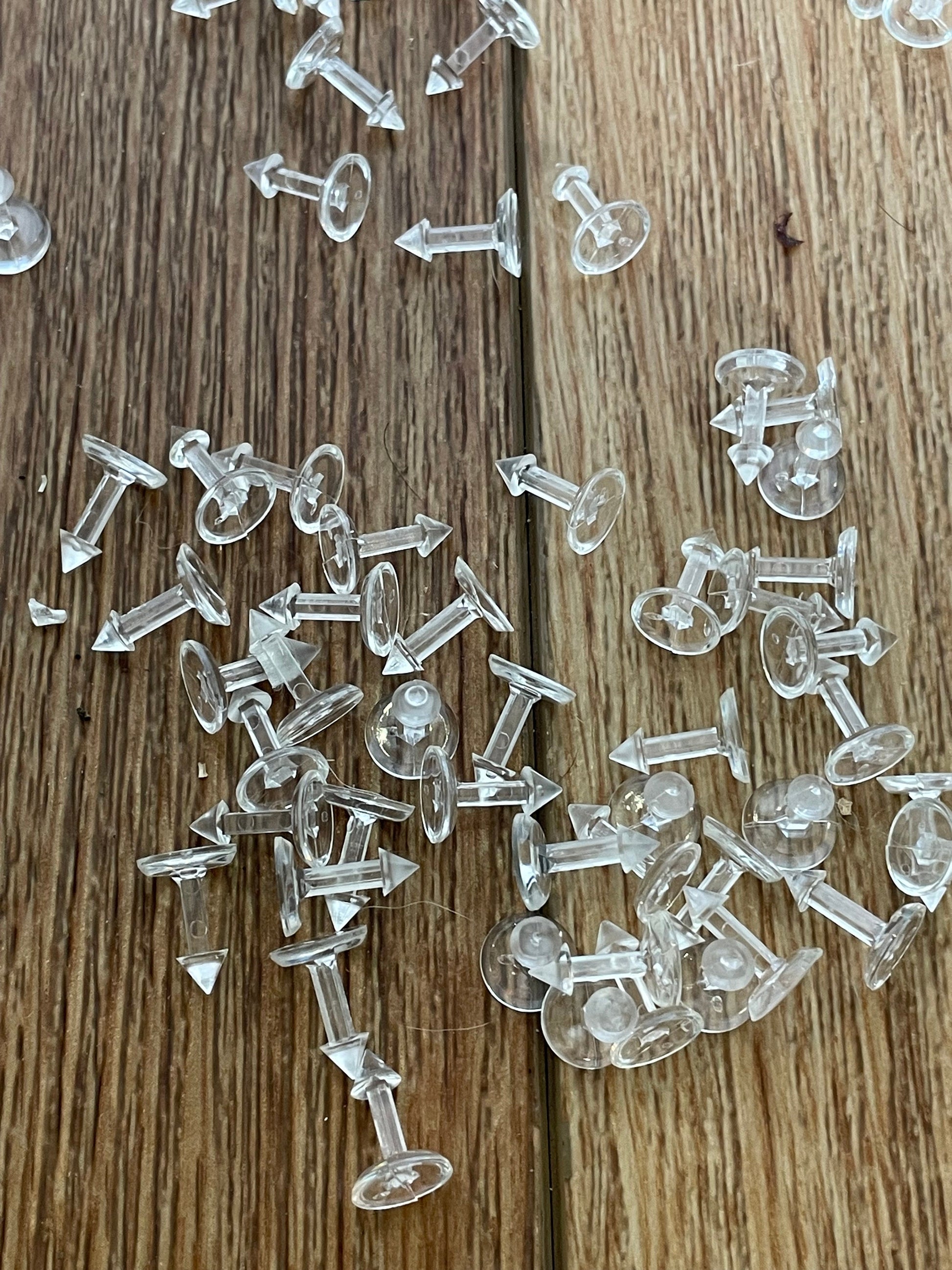 This is is good condition for the age and comes with a bag of plastic studs. It looks like maybe someone had a cocktail and tried to use it as there is some old cellophane tape on it but I’ll leave it to the new owner to remove this patina.