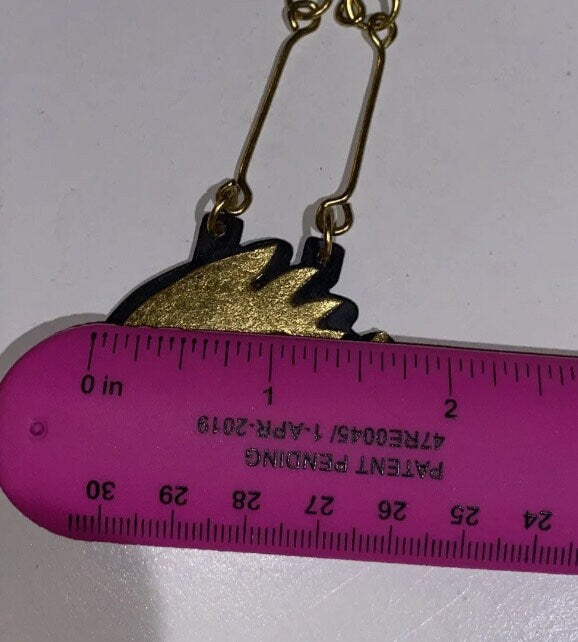 This necklace is a rare piece of handmade art. Created in Chile, the artist has signed the back. It is made of brass and has both lapis lazuli and malachite stones. Look......I like brutalism; what can I say? This is an affordable piece for the age, provenance, AND completely wearable. Many pieces of brutalist jewelry are a little heavy and VERY abstract Gomez's work was more minor in scale and used recognizable motifs. It's the perfect starter piece.