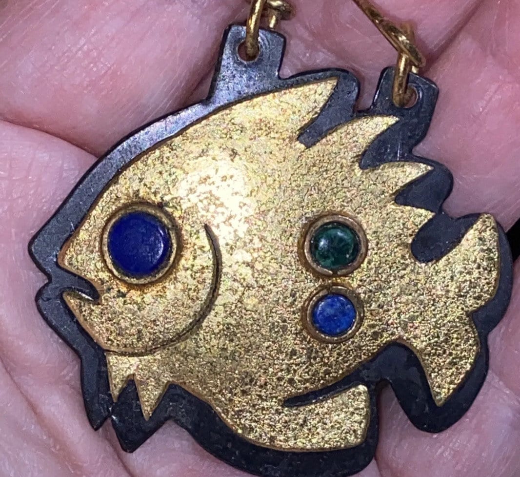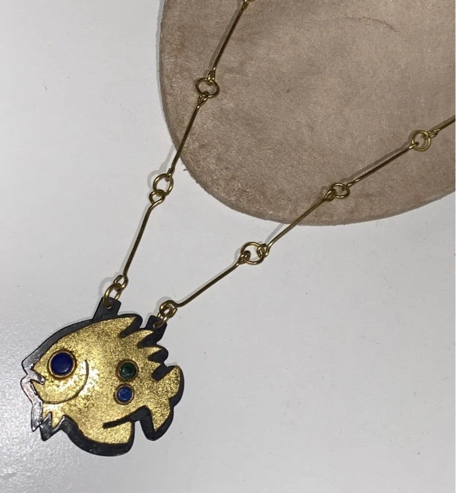 Vintage Brutalist Brass Fish Necklace by Christian Luis Gomez