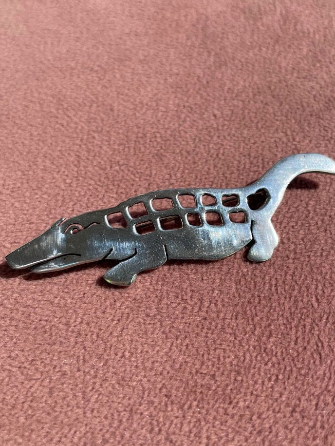 Vintage Drunken Alligator Pin Sterling Silver