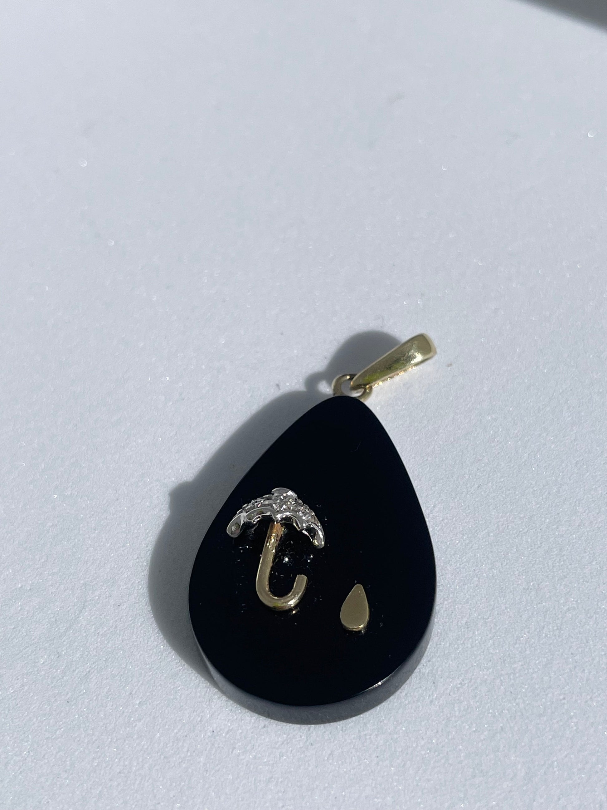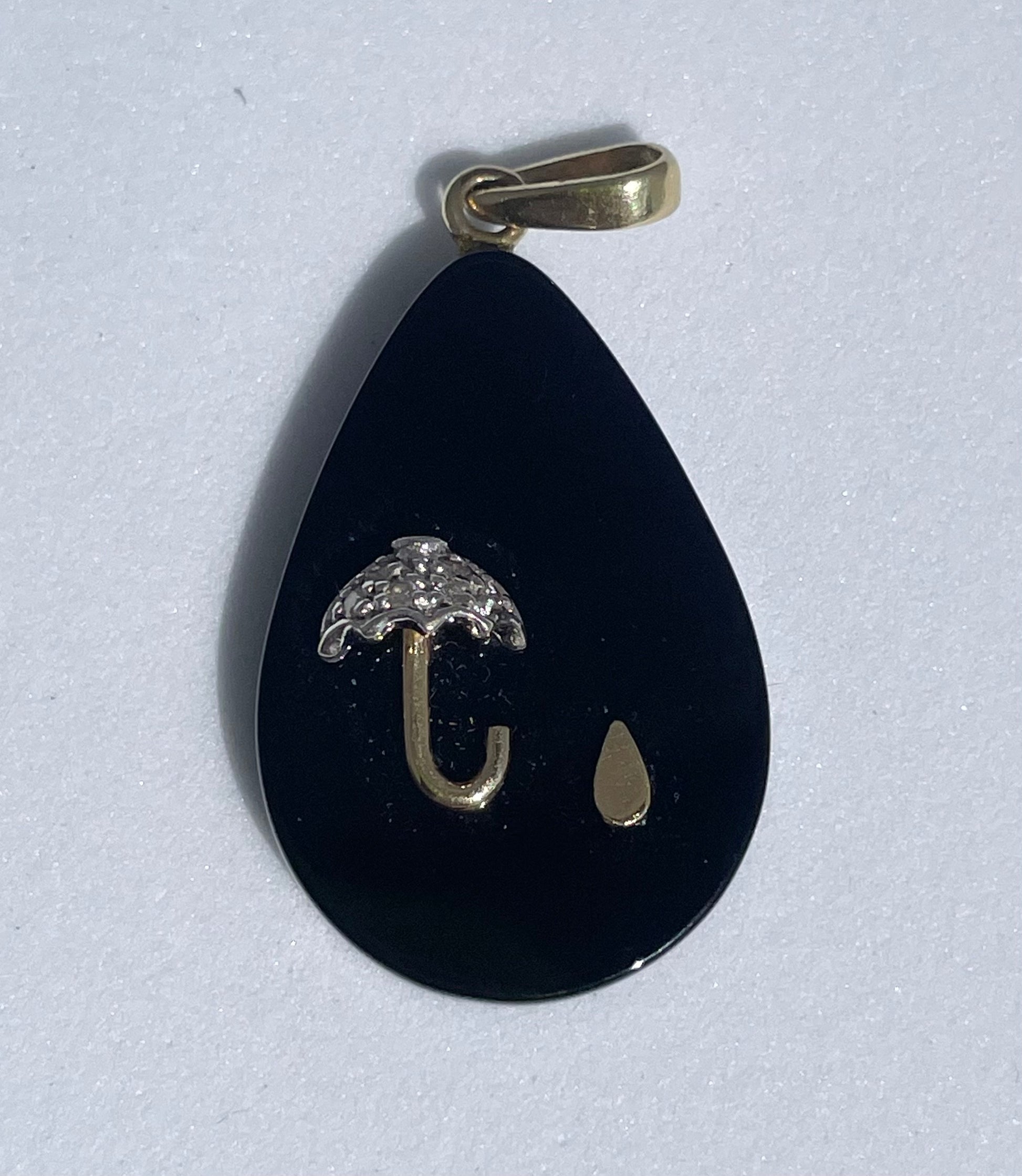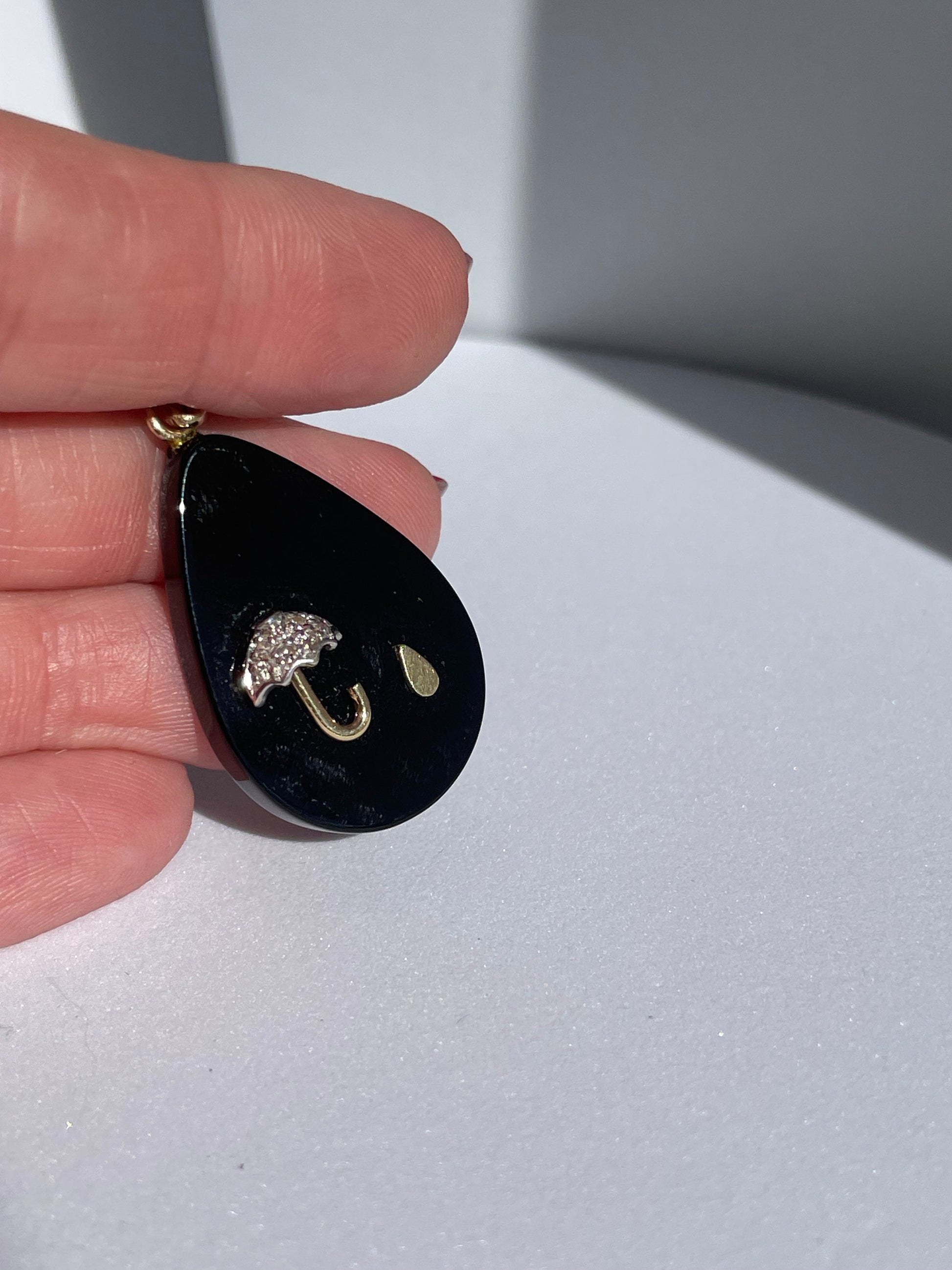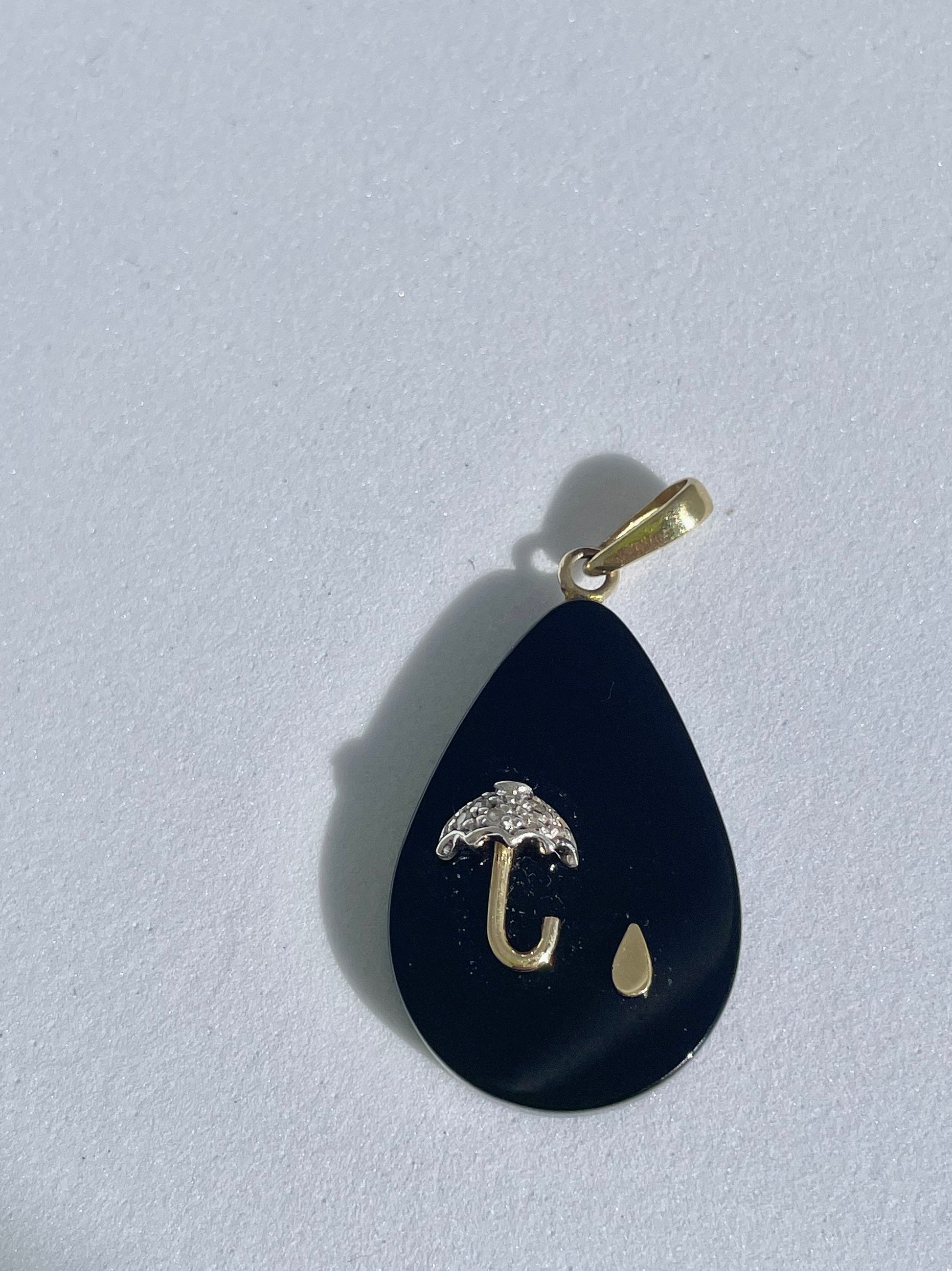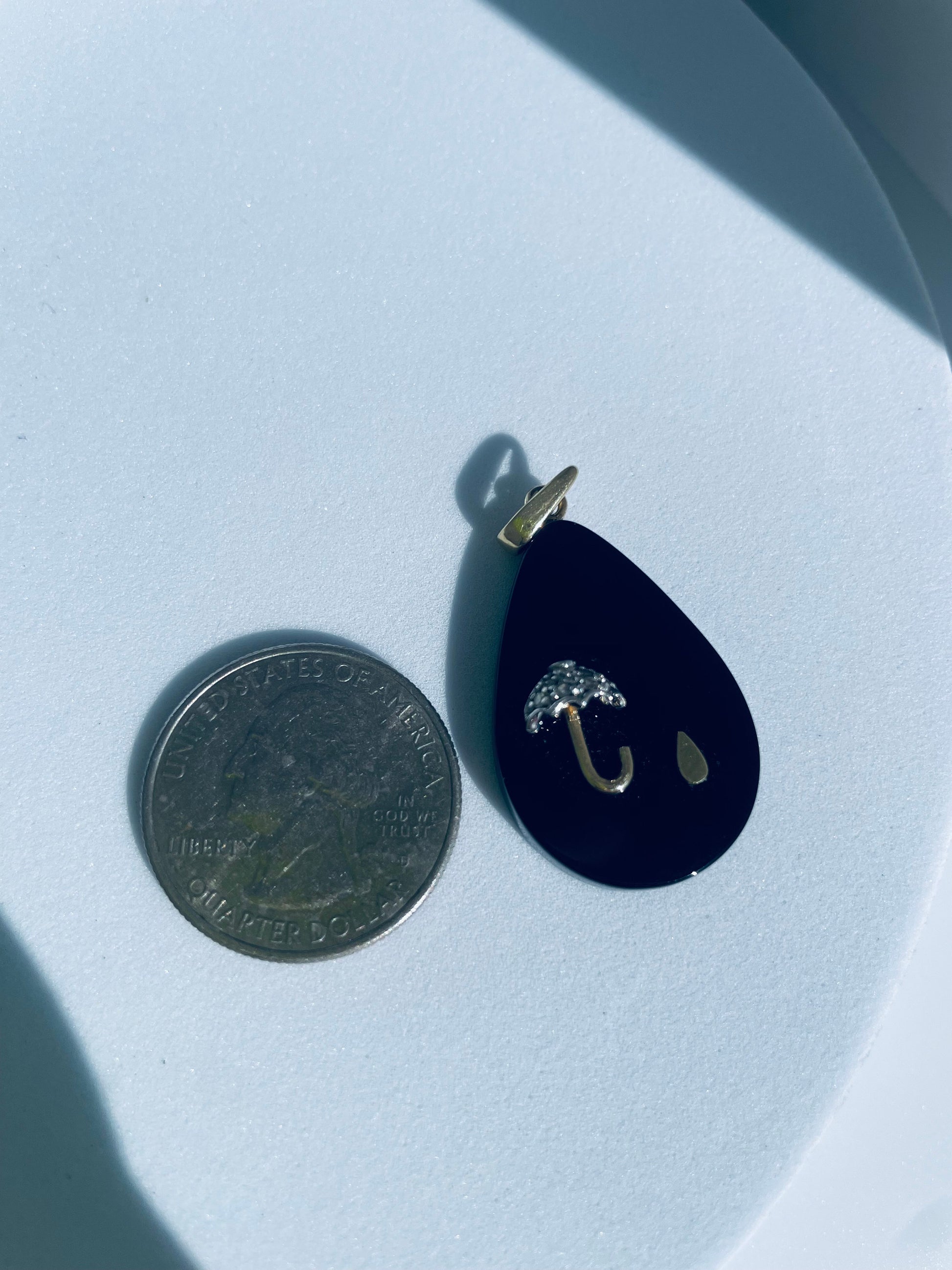 Vintage Estate 14k Gold, Onyx and Diamond Umbrella and Rain Pendant