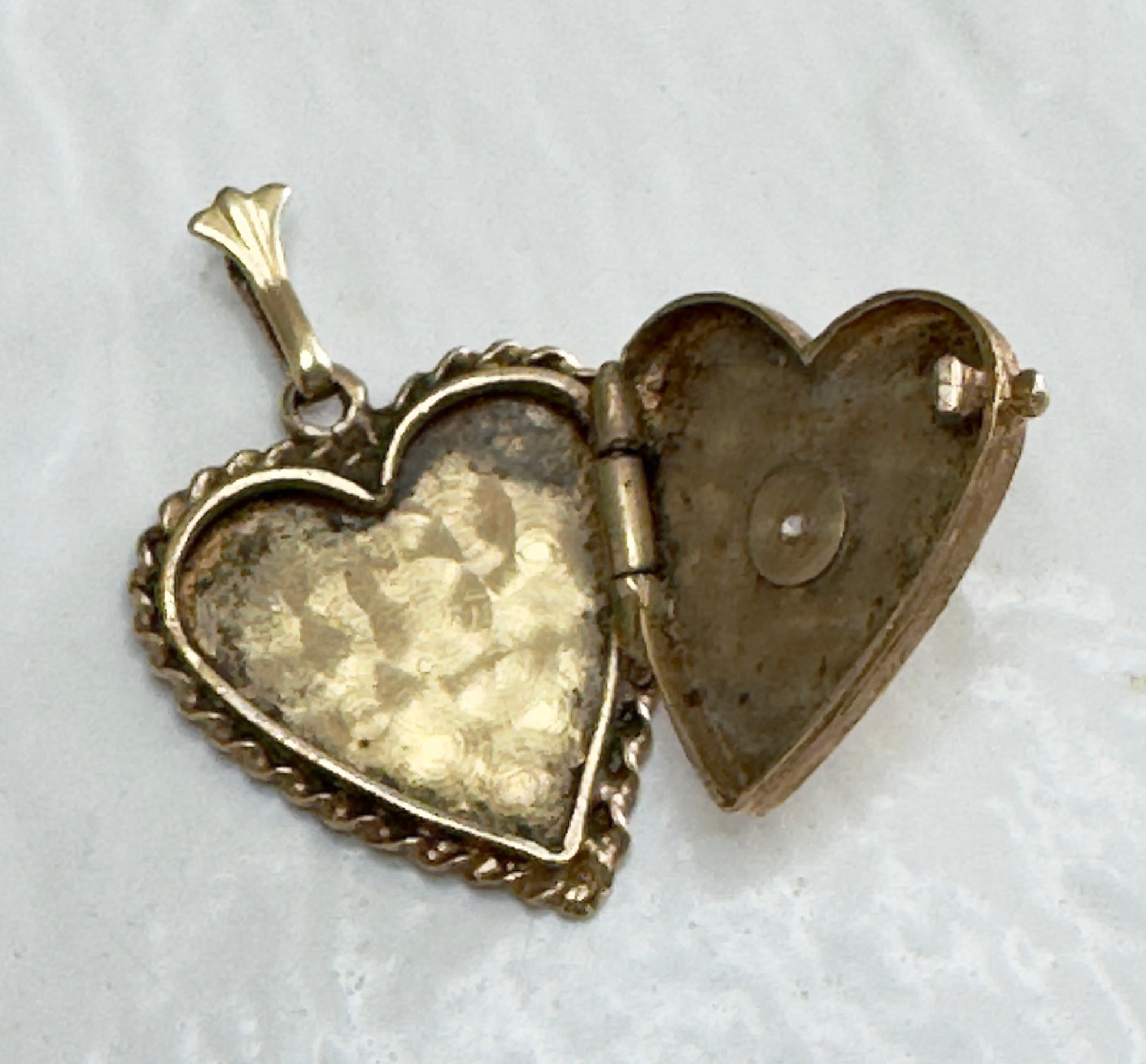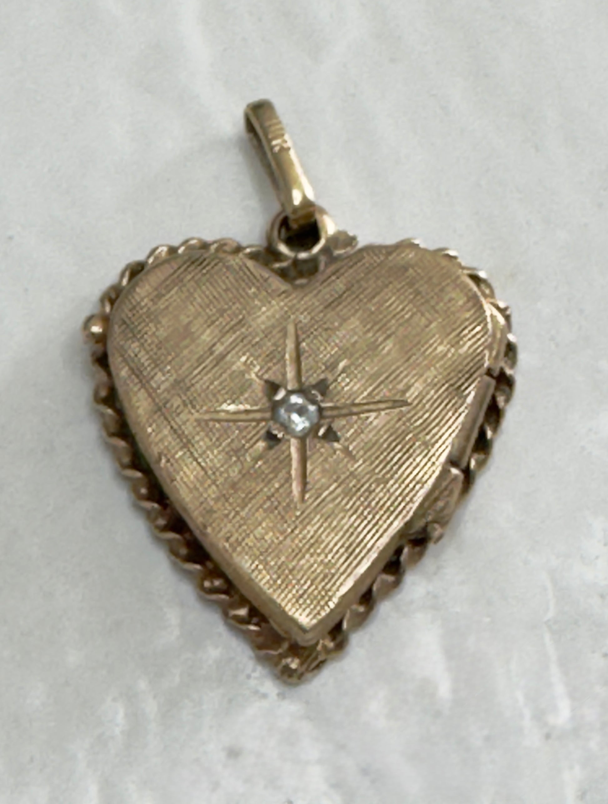Vintage Estate 14K Yellow Gold Heart Locket with Diamond Chip - 1950s-1960s