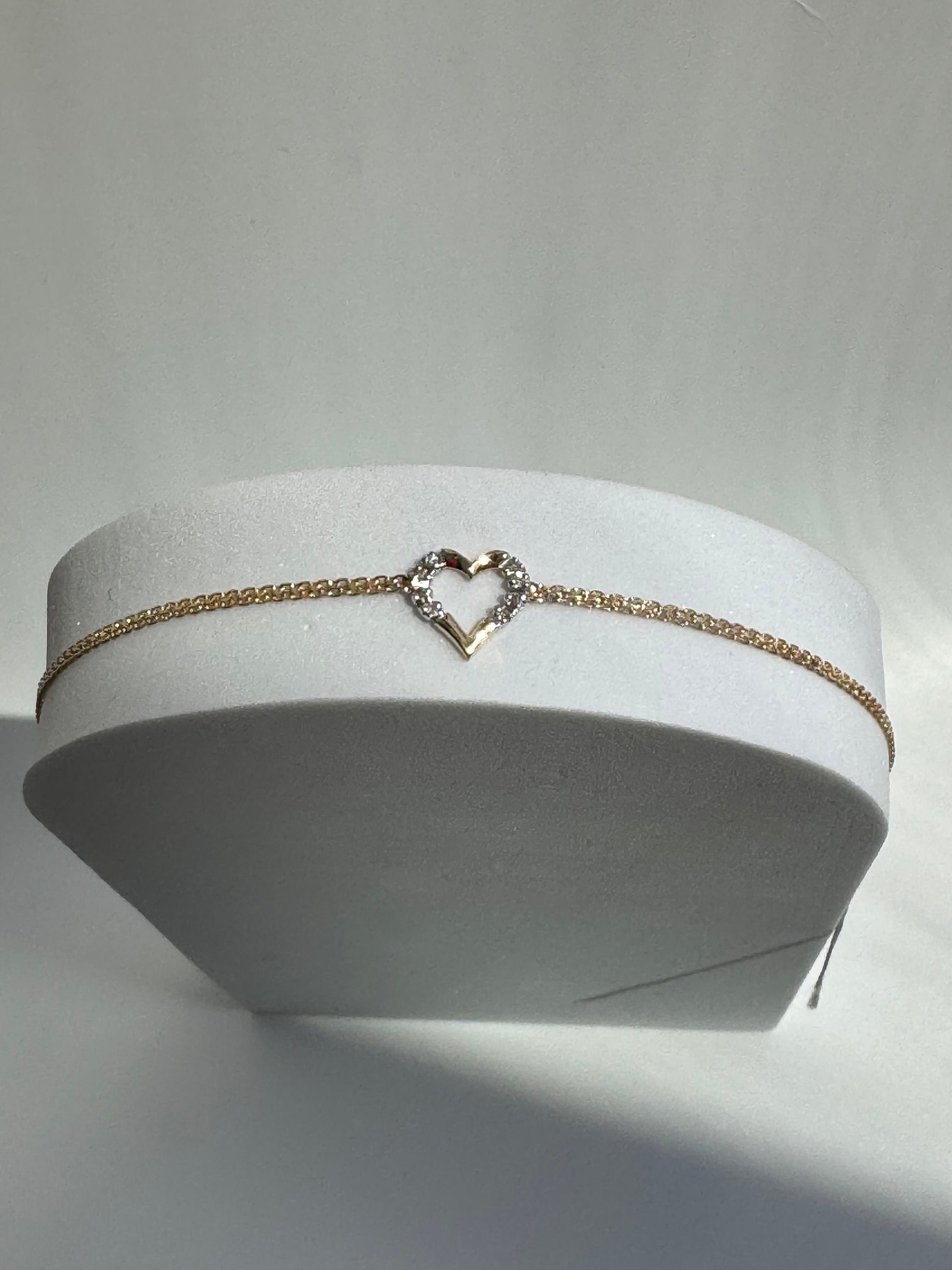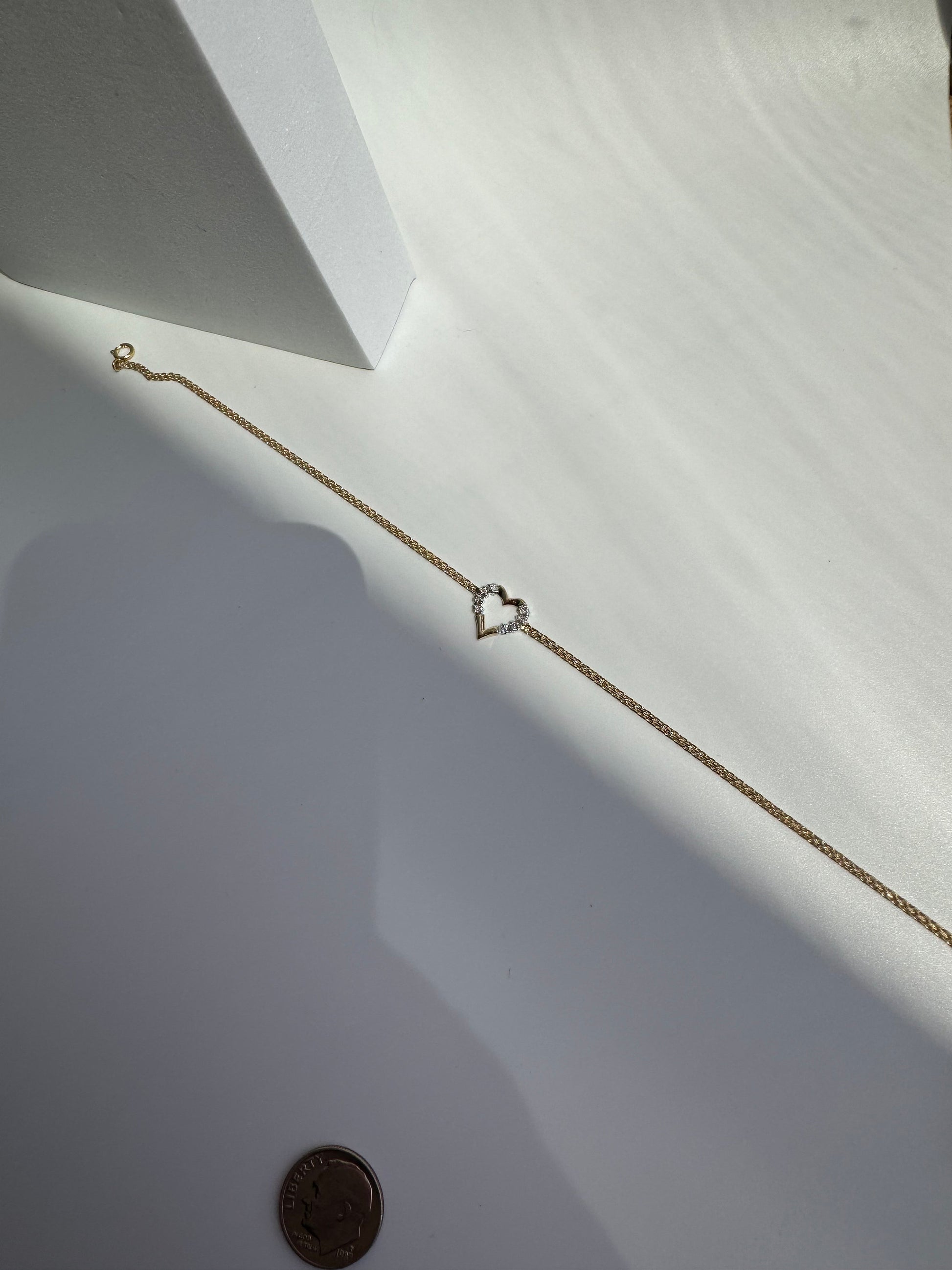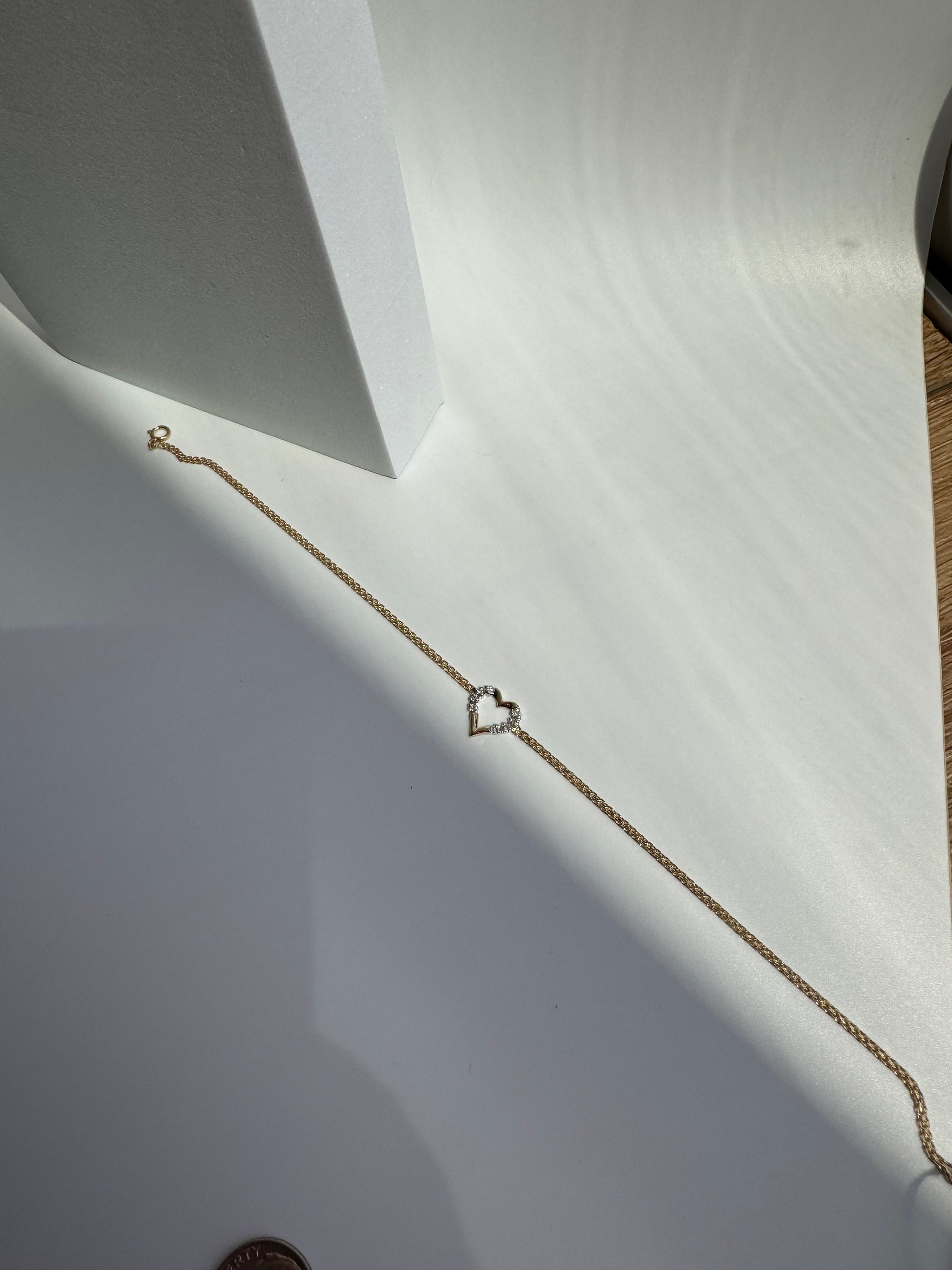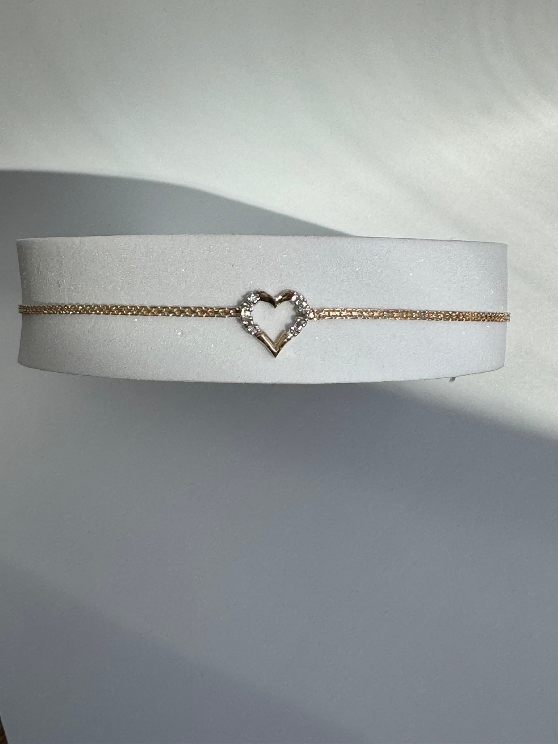 Vintage Estate Deadstock Heart Anklet in 14k and Diamonds