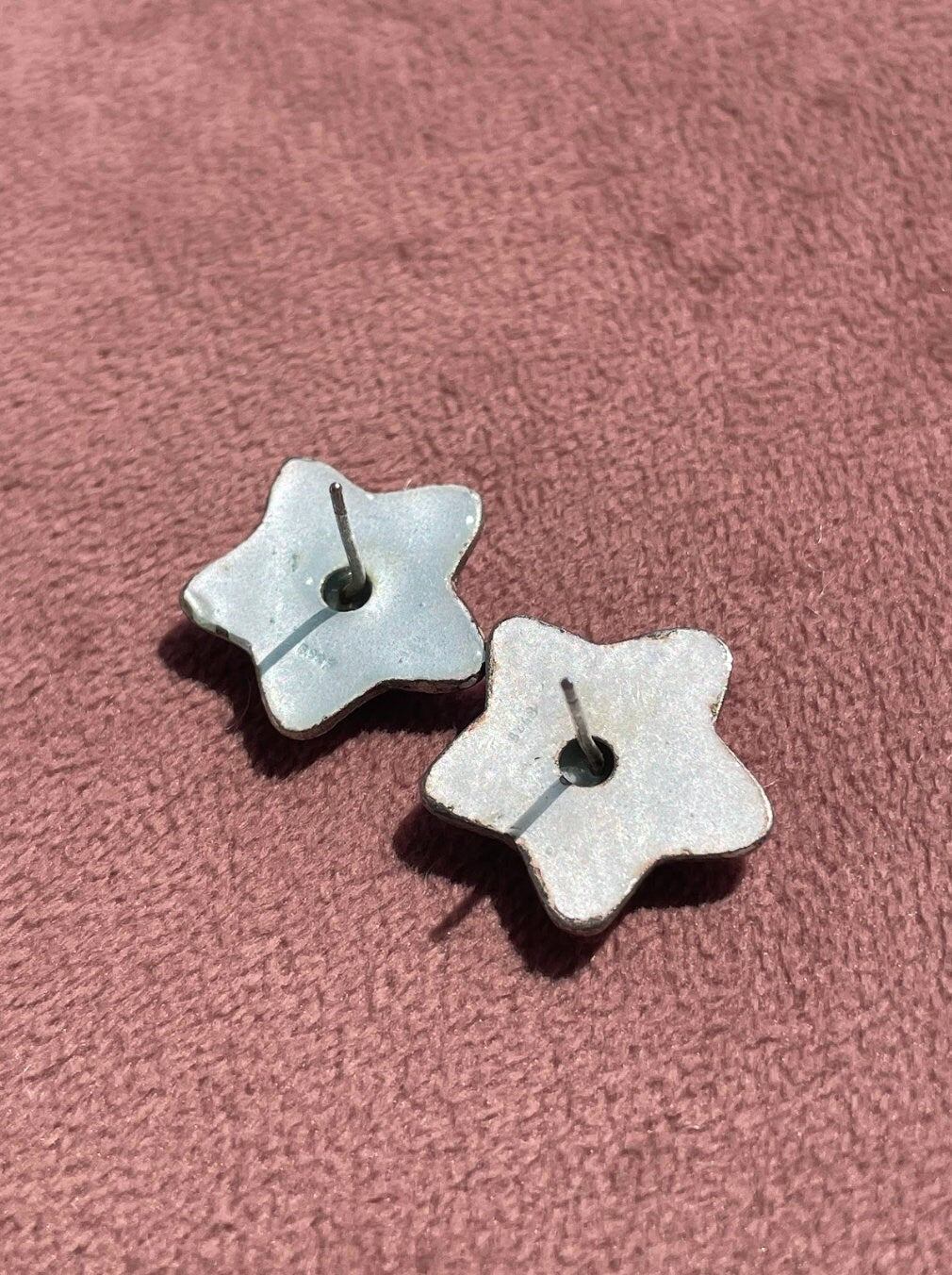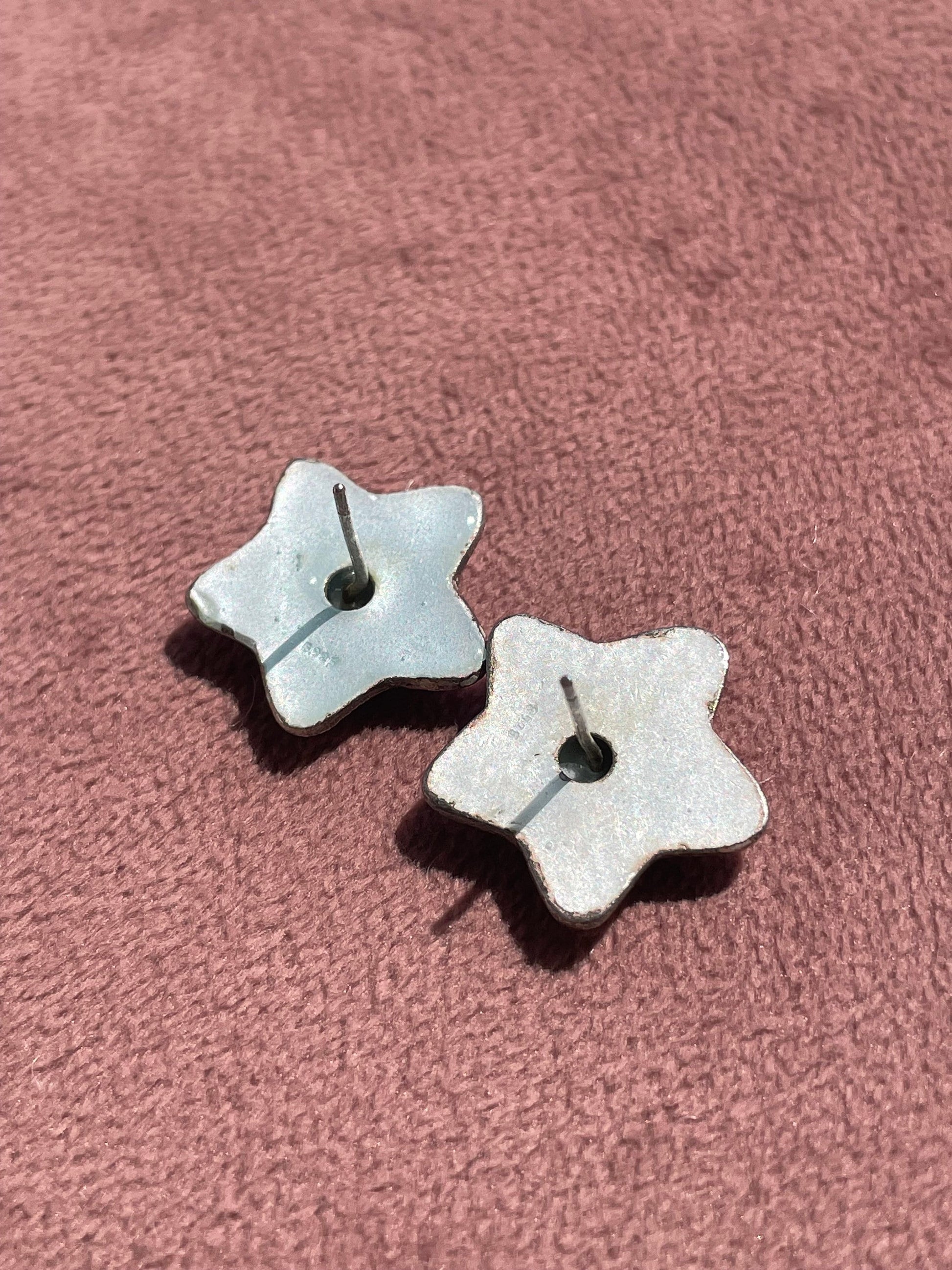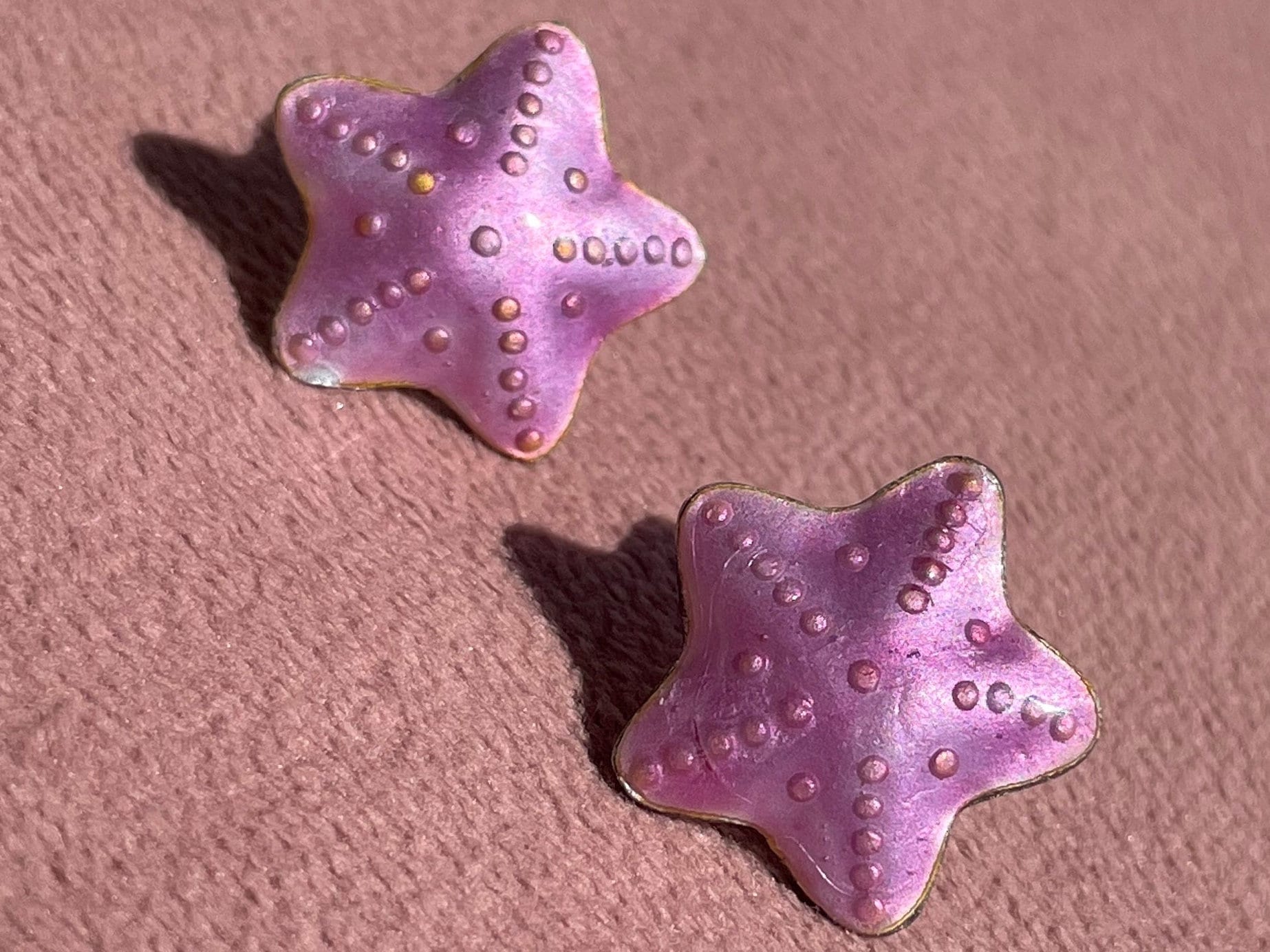 Vintage Guilloche Sterling Silver Starfish Earrings