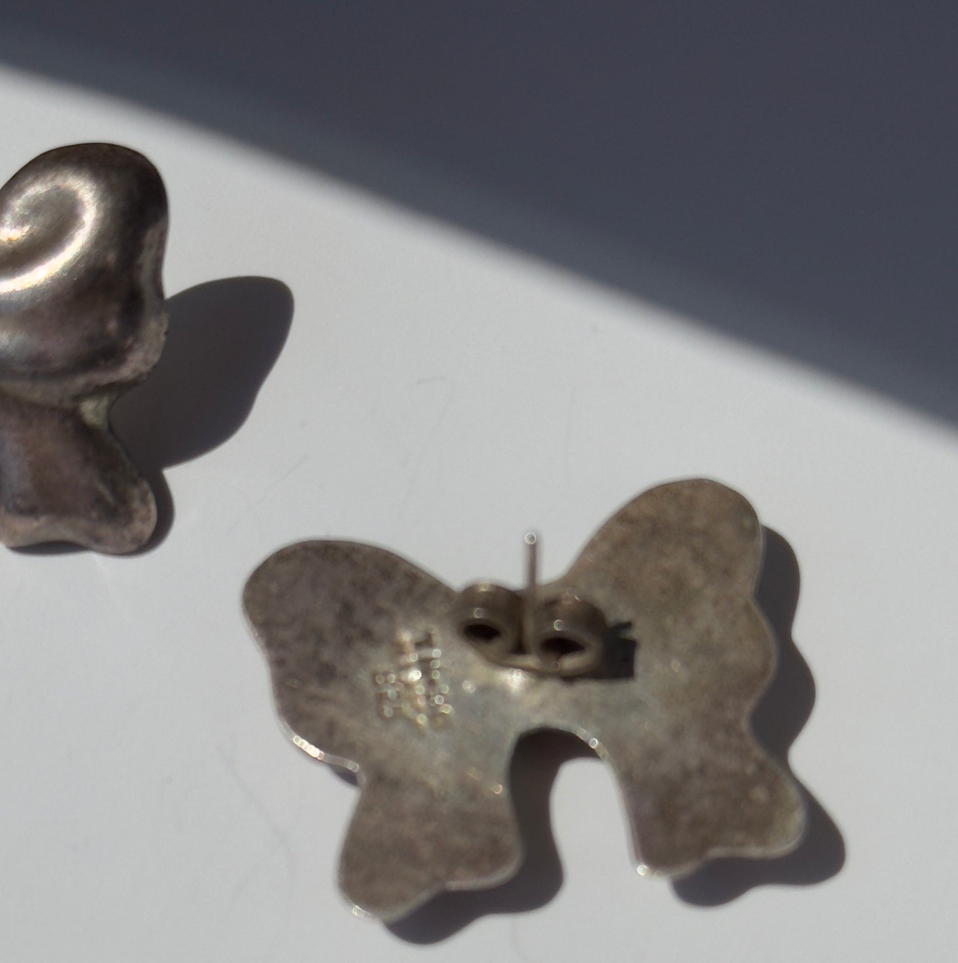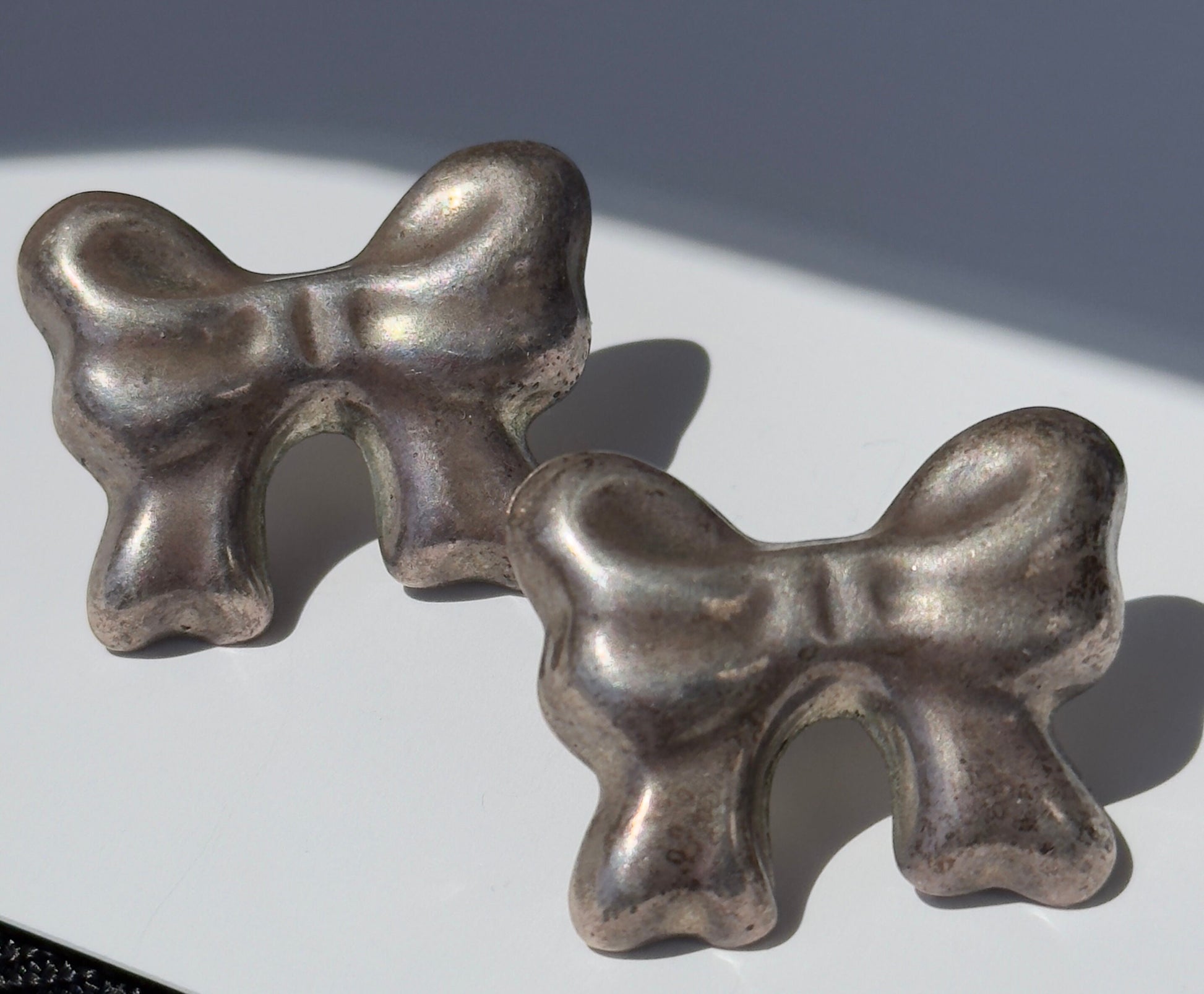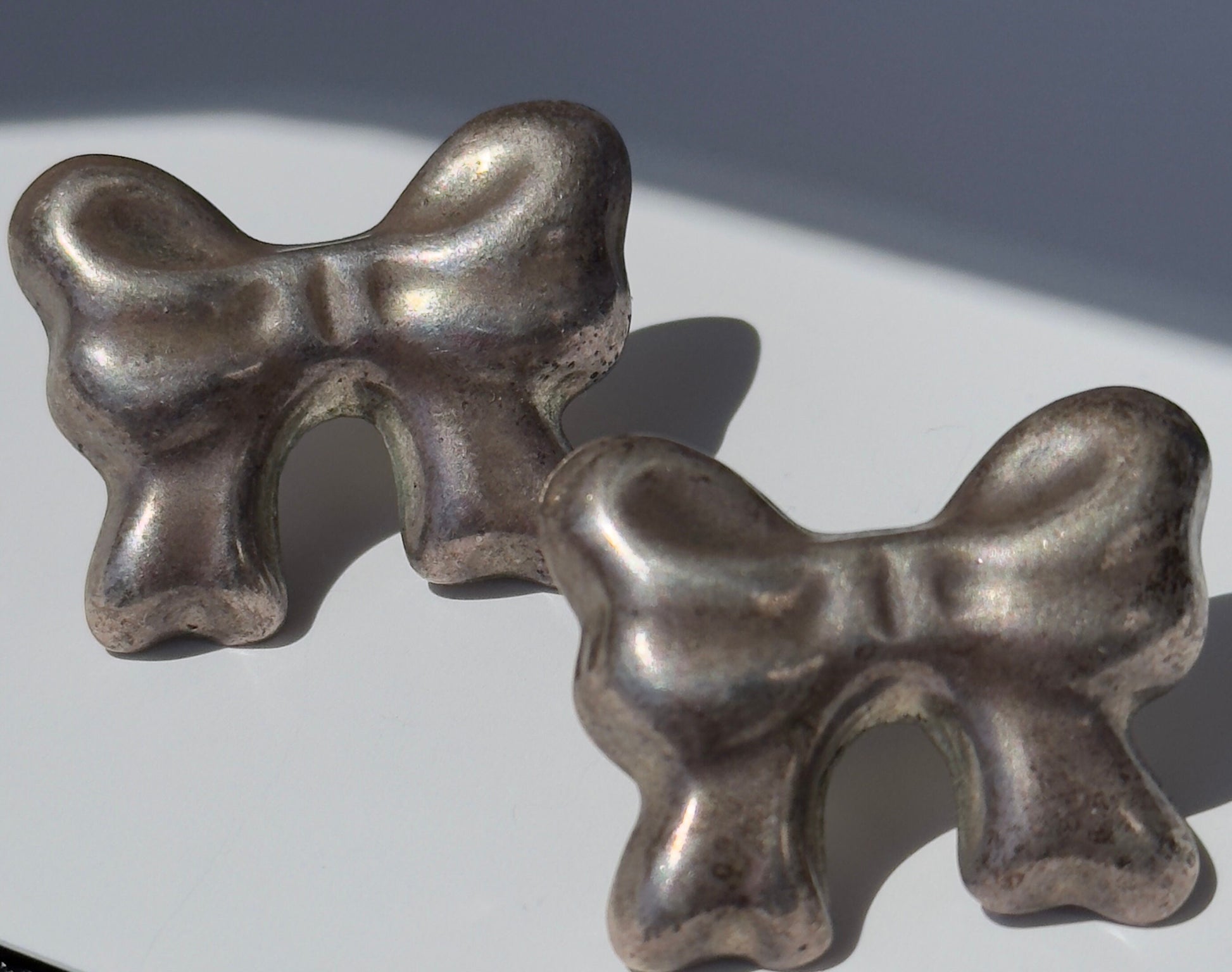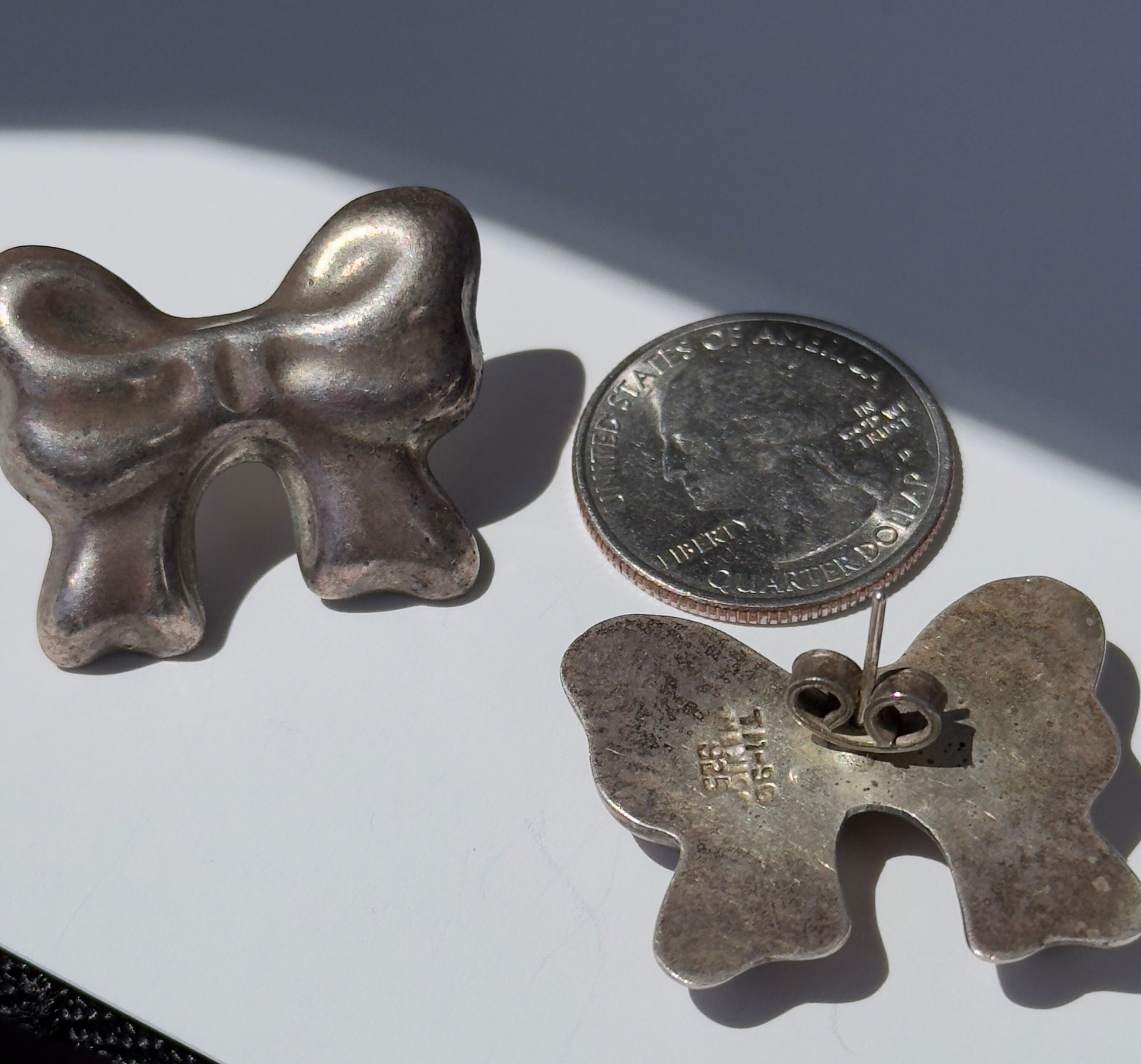 Ahhhhhmazing large puffy bow stud earrings. Marked Taxco these handmade earrings are a rare treat that look good with a suit, mohair sweater, or summer dress