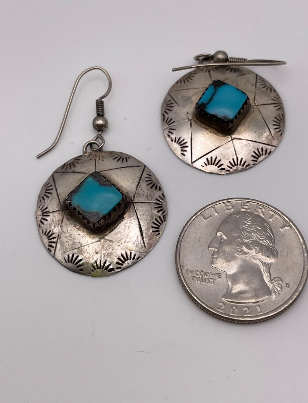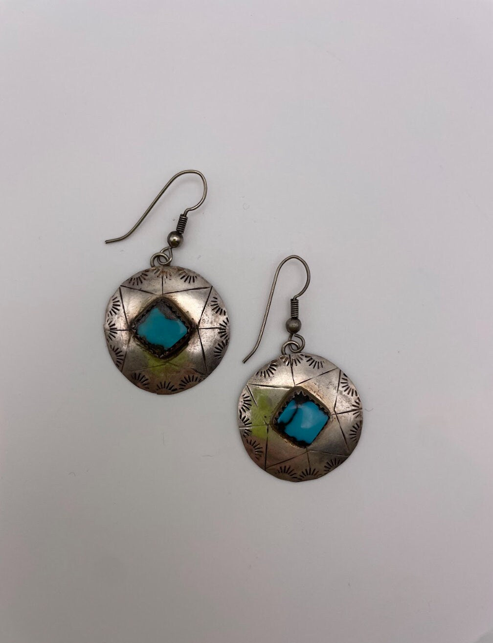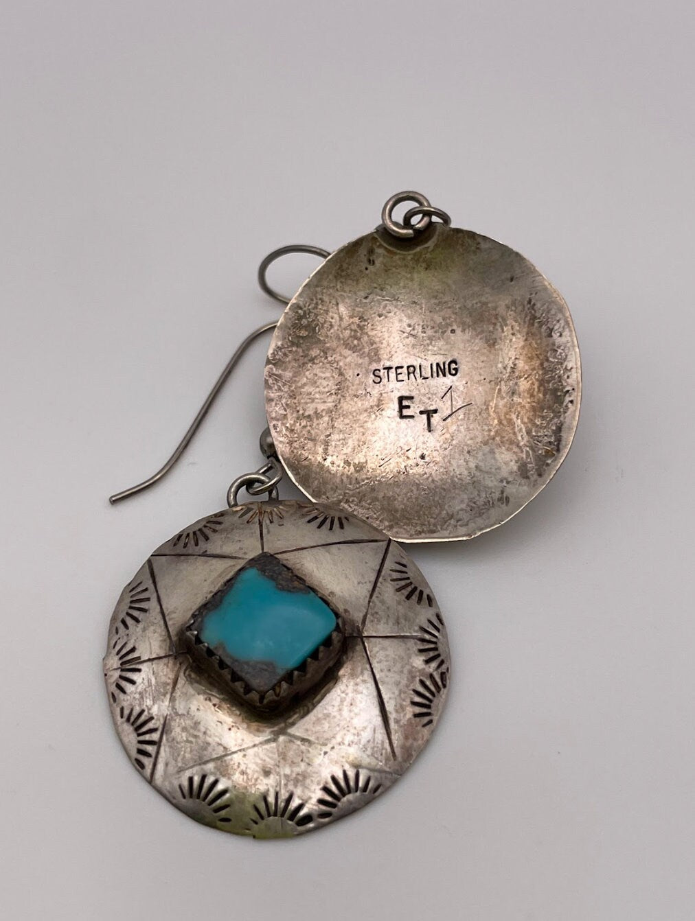 Vintage Native American Navajo Sterling and Turquoise Shield Earrings