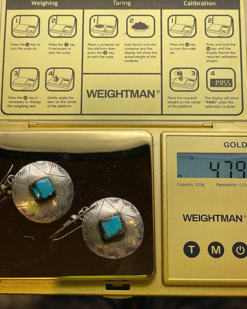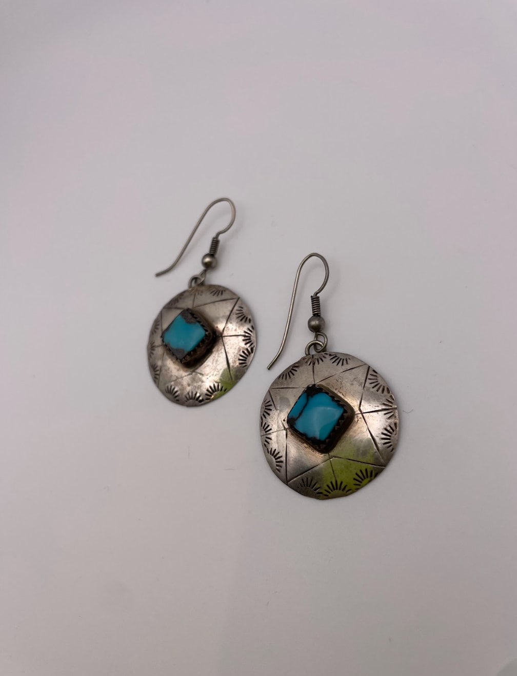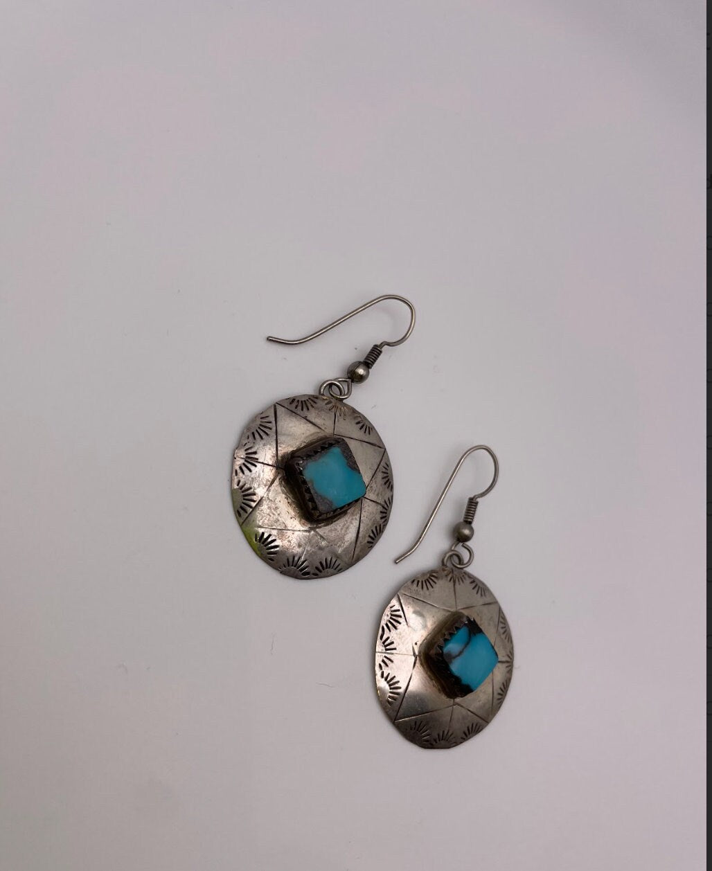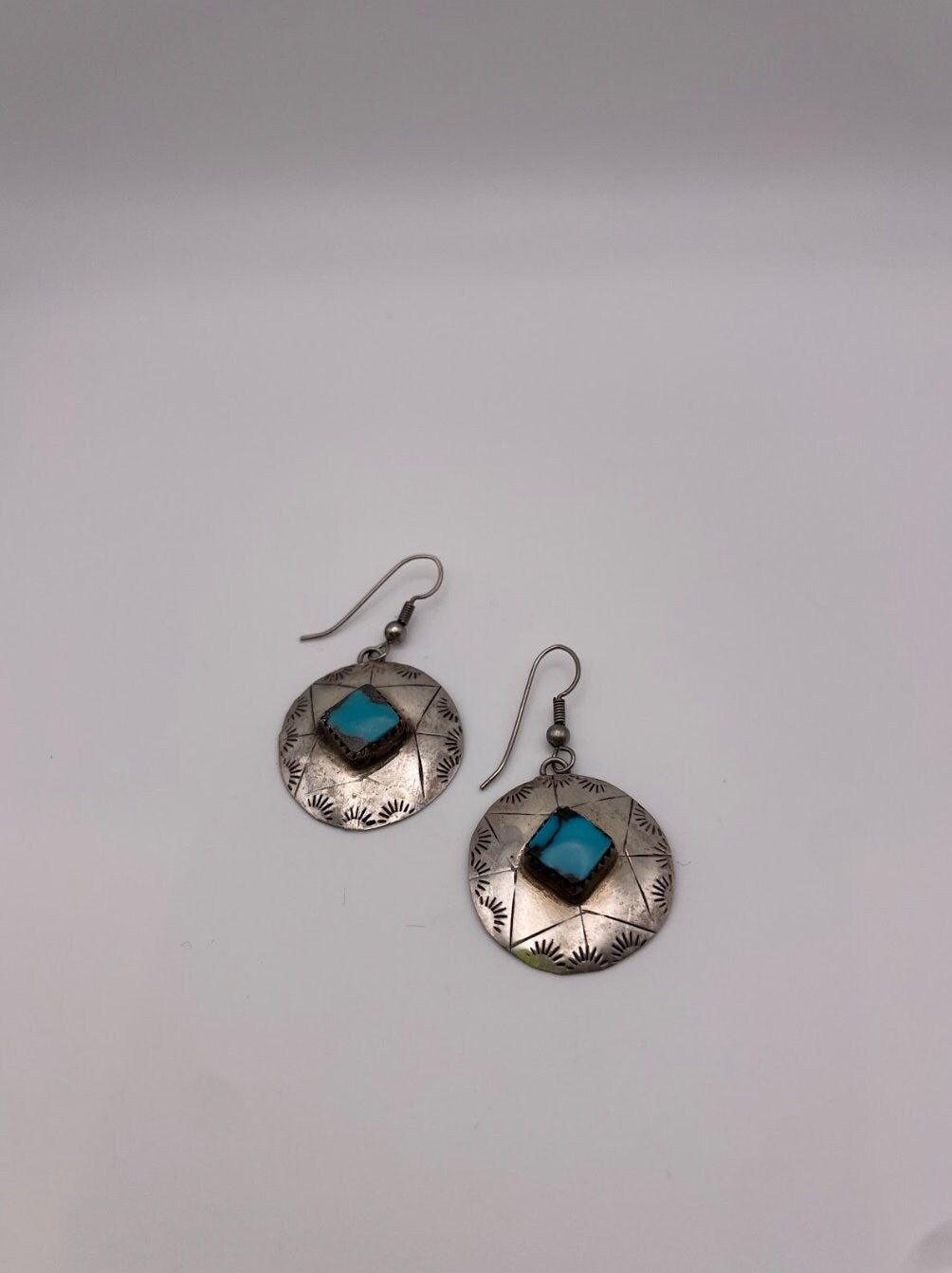 Vintage Native American Navajo Sterling and Turquoise Shield Earrings