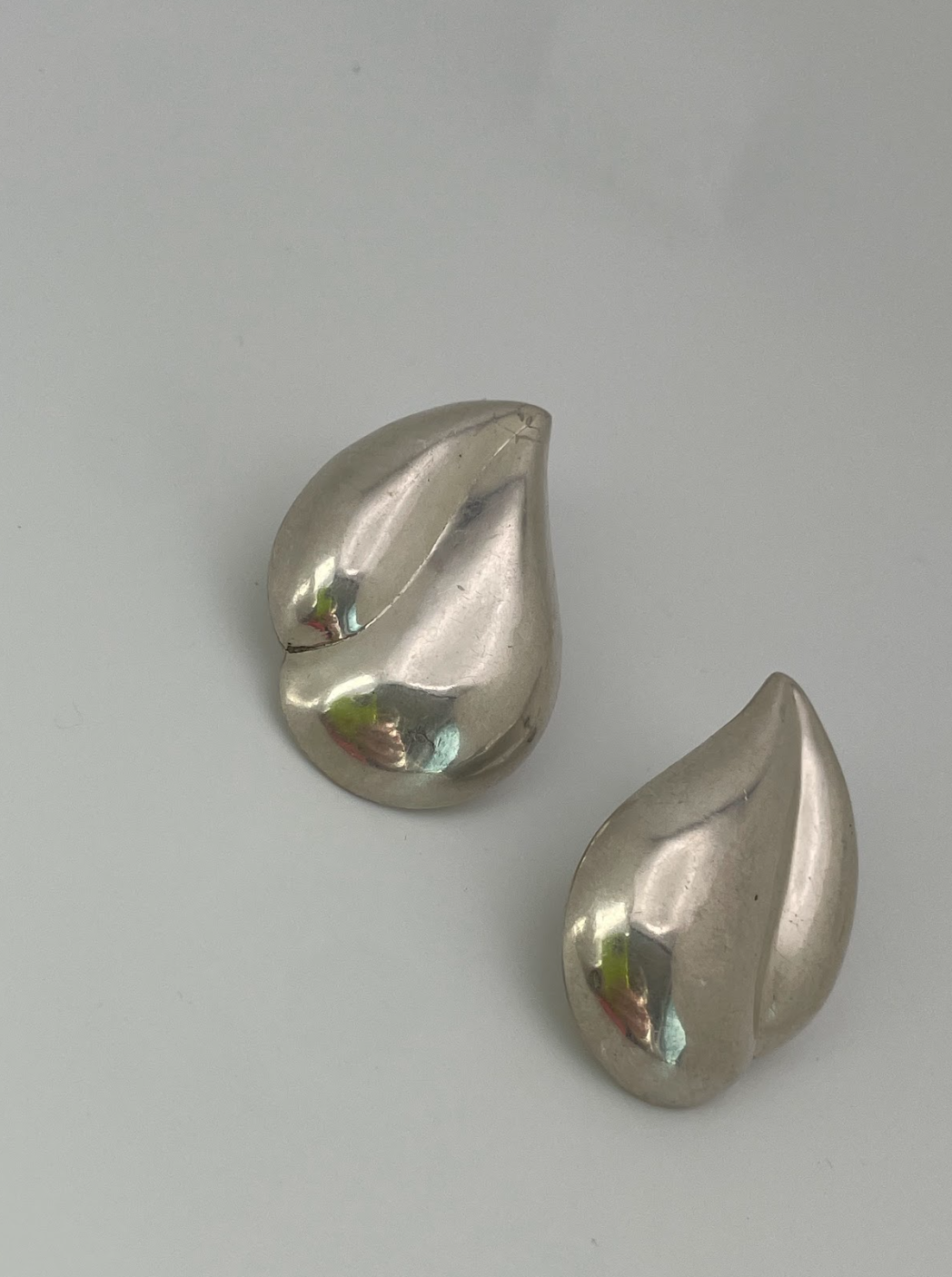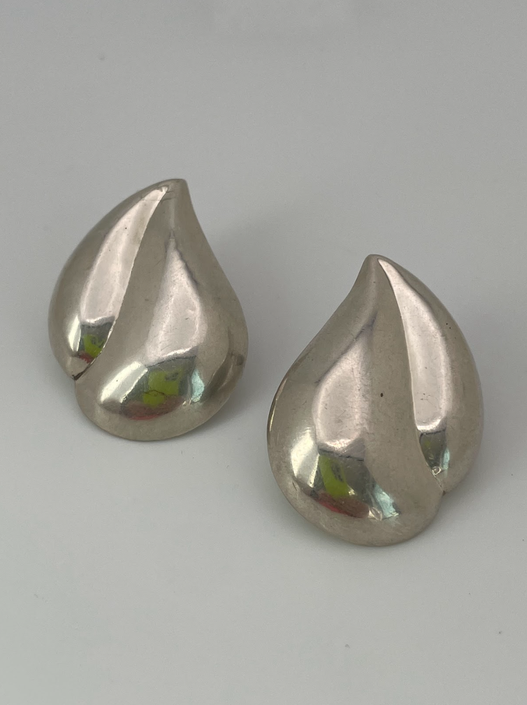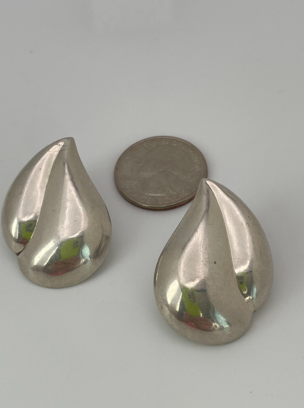 Vintage Sterling Silver Abstract Teardrop Stud Earrings
