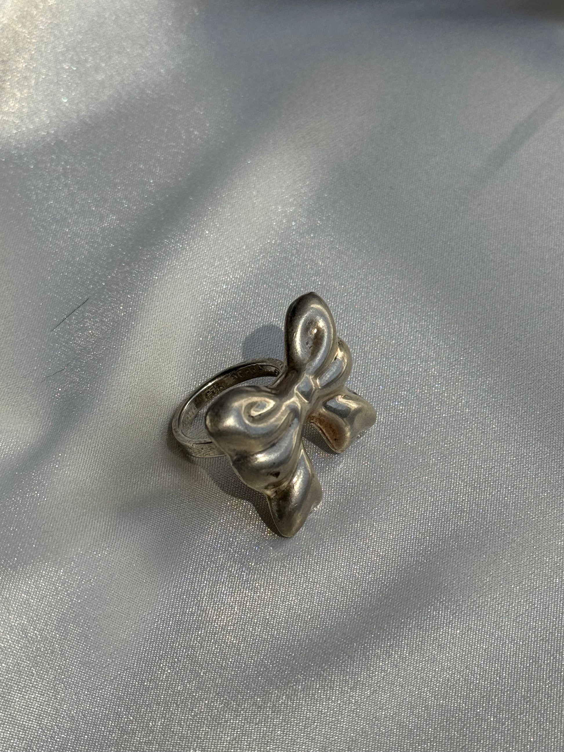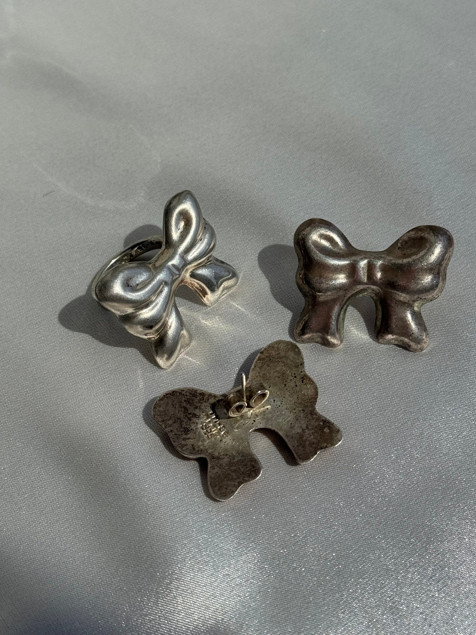Vintage Sterling Silver Big Bow Earrings and Ring Set Taxco