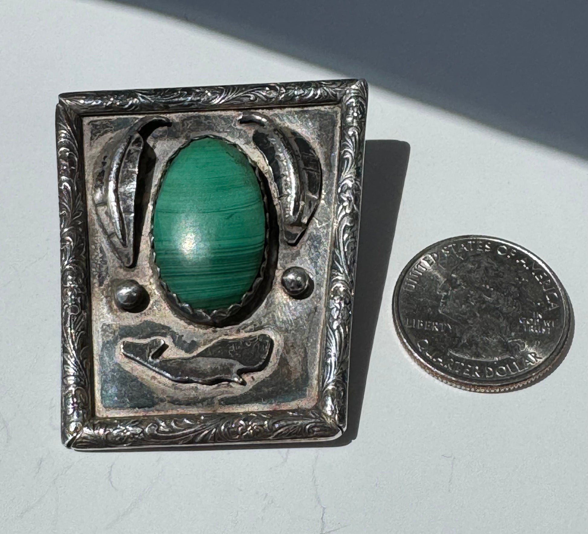 Can you believe this great bolo?!?! I’ve never seen one with a sprrm whale but here it is. No makers mark but marked and testing as Sterling.