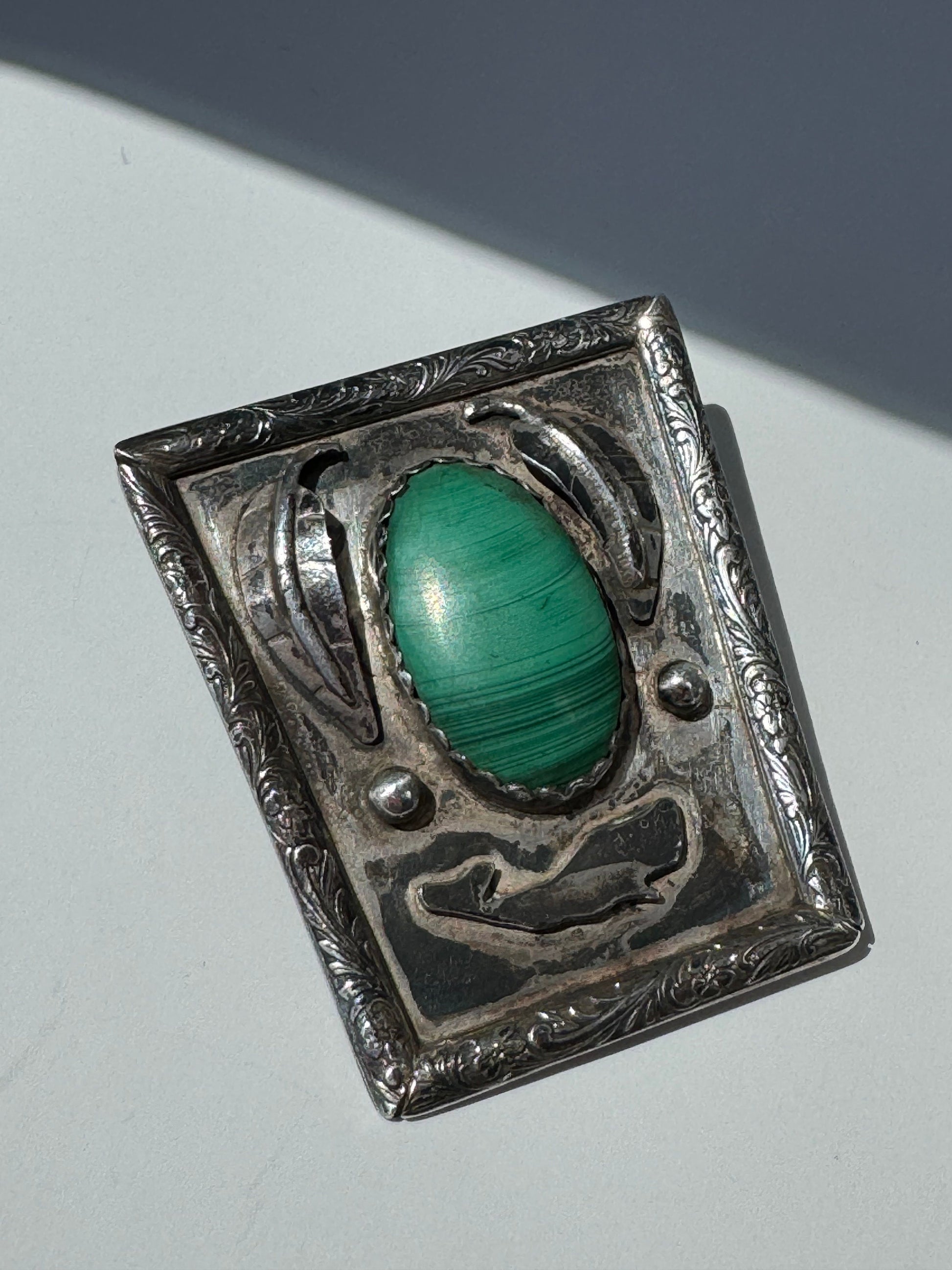Vintage Sterling Silver Bolo Tie Malachite and Whale Themed