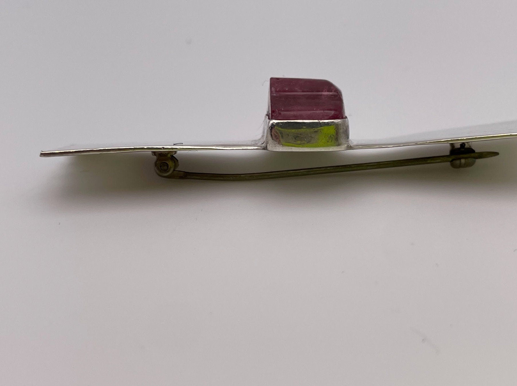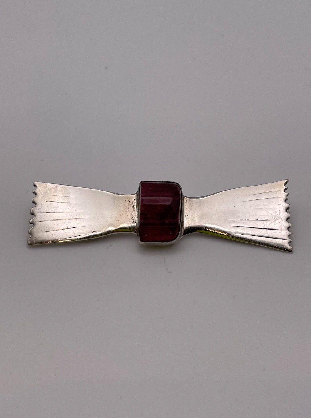 Vintage Sterling Silver Bow Pin with Gem Slice
