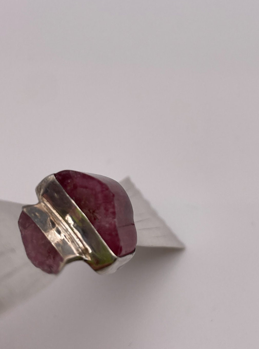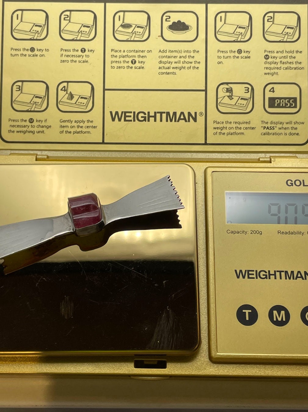It’s she a beauty? This little primitive bow is perky and has an interesting little detail in the center - a sliced gem or geode of some kind. It could be a rough emerald, it could be a pink rock, but either way it’s great. It is not marked but does test as silver.
