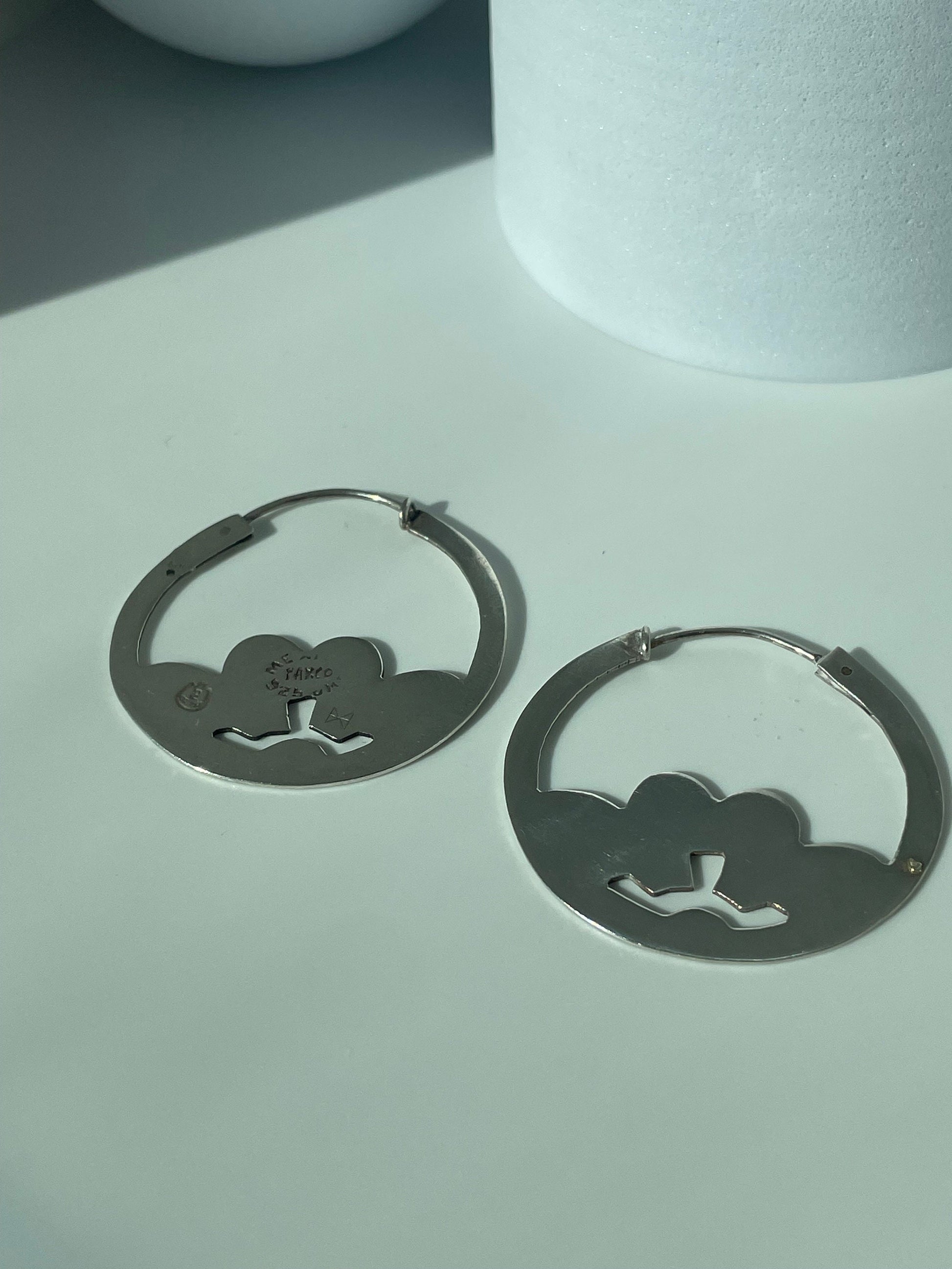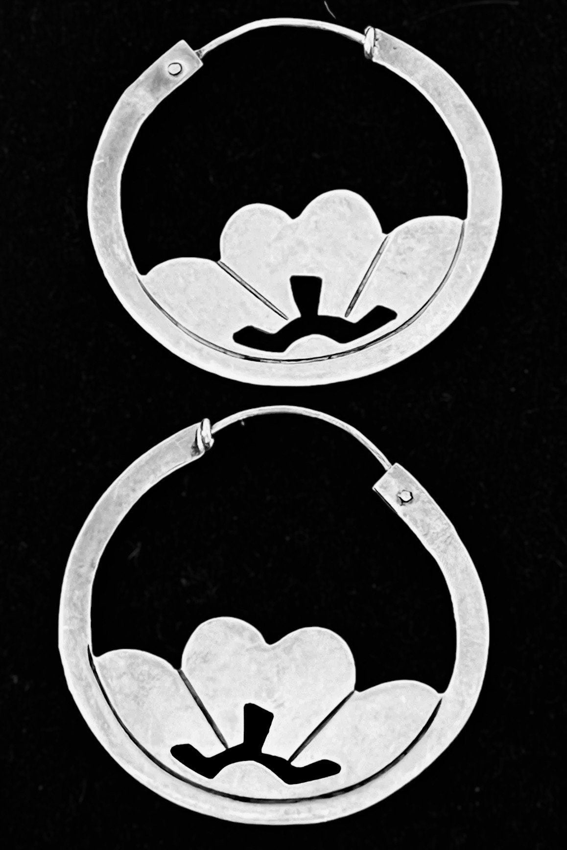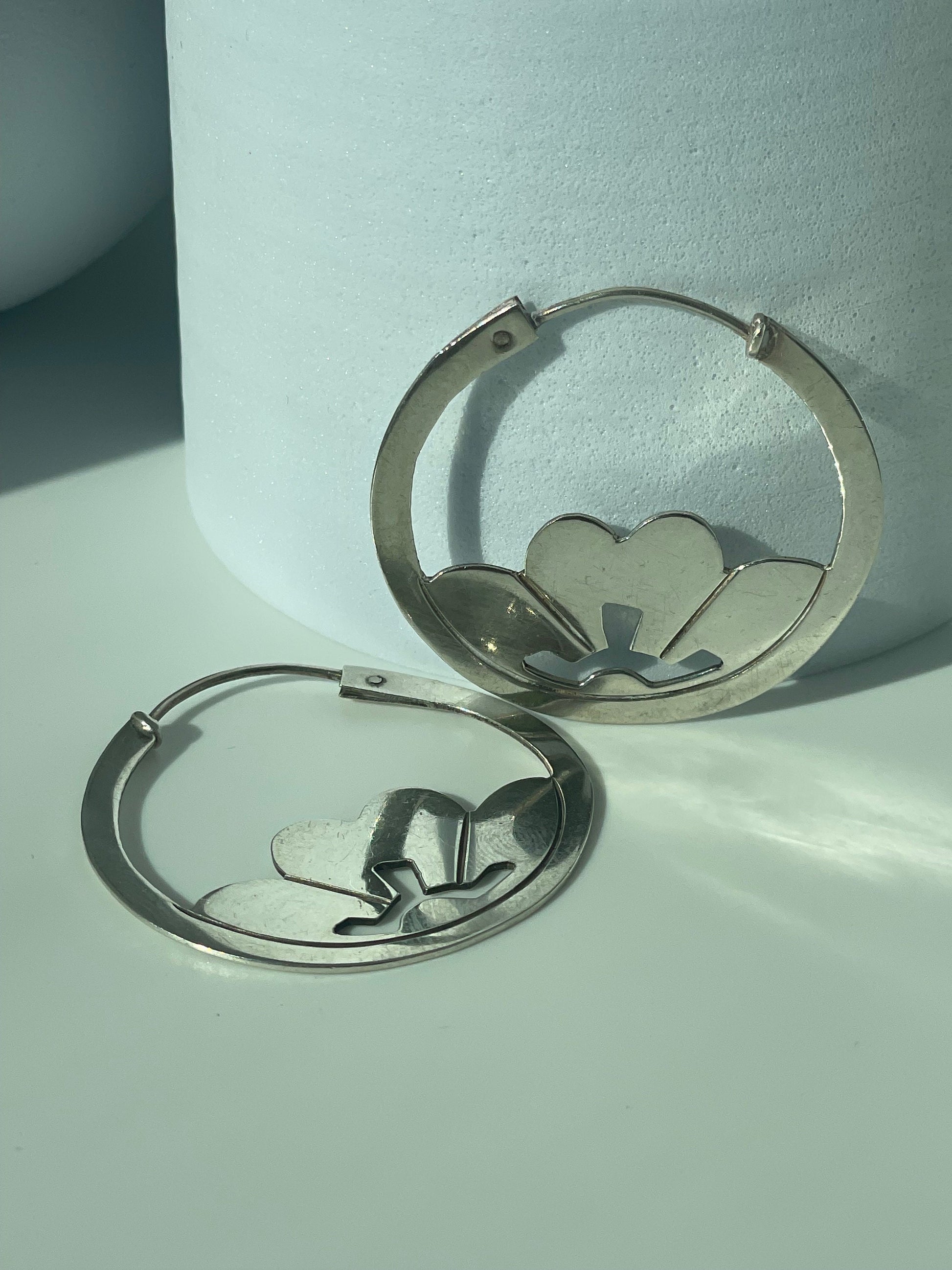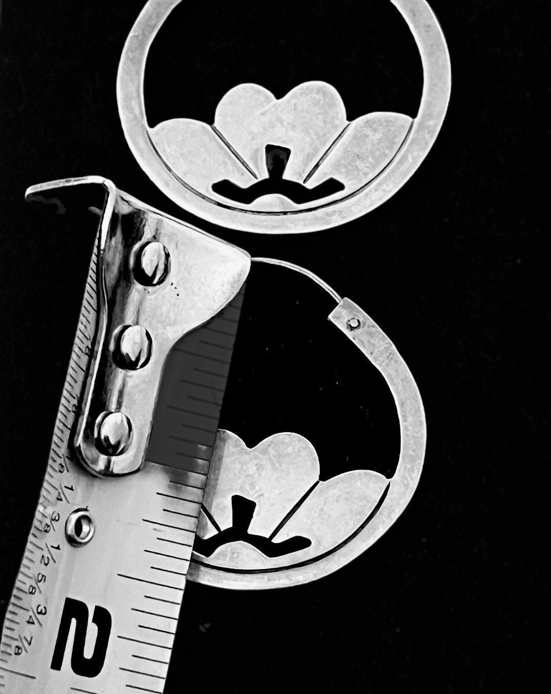 Vintage Sterling Siver Lotus Hoops Taxco Mexico