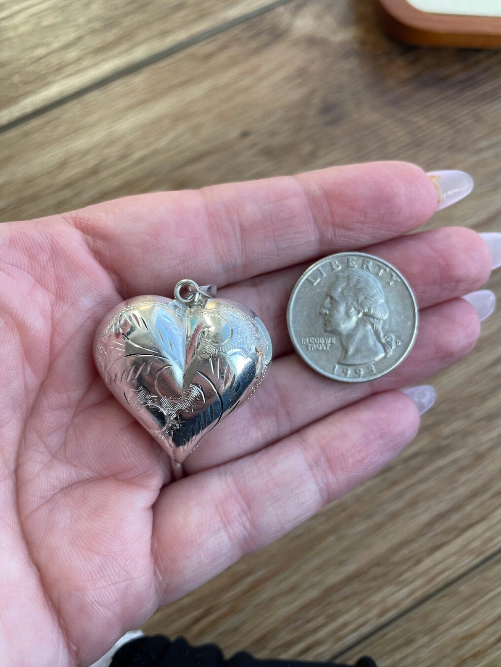 Vintage Sterling Southwestern Puffy Heart Pendant with Scroll Work