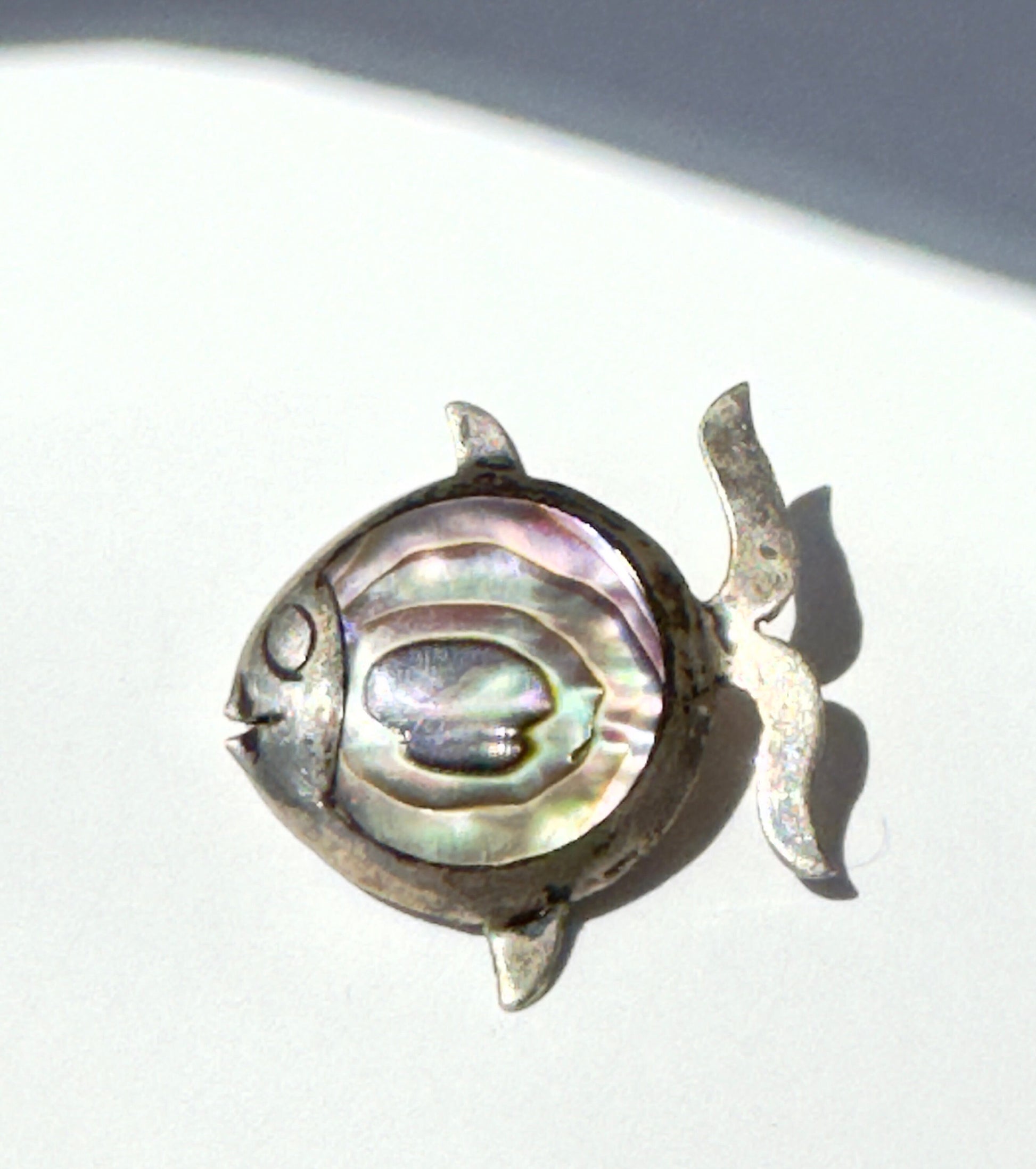 Vintage Taxco Mexico Abalone and Sterling Silver Pin Brooch