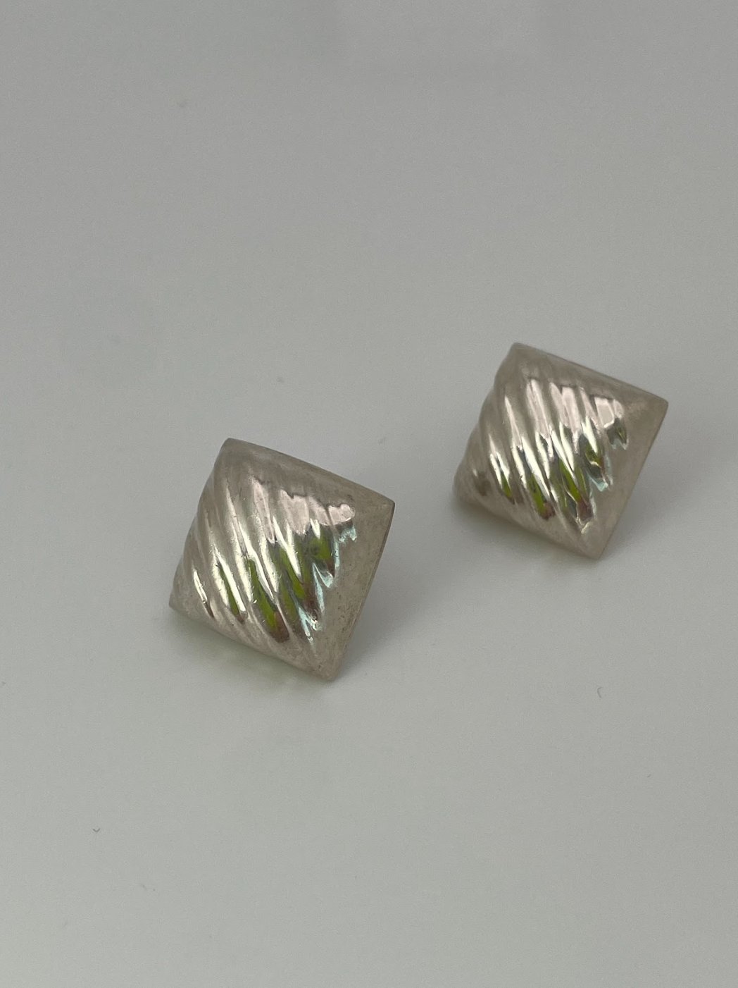 Vintage Zig Zag Pillow Stud Earrings Sterling Silver